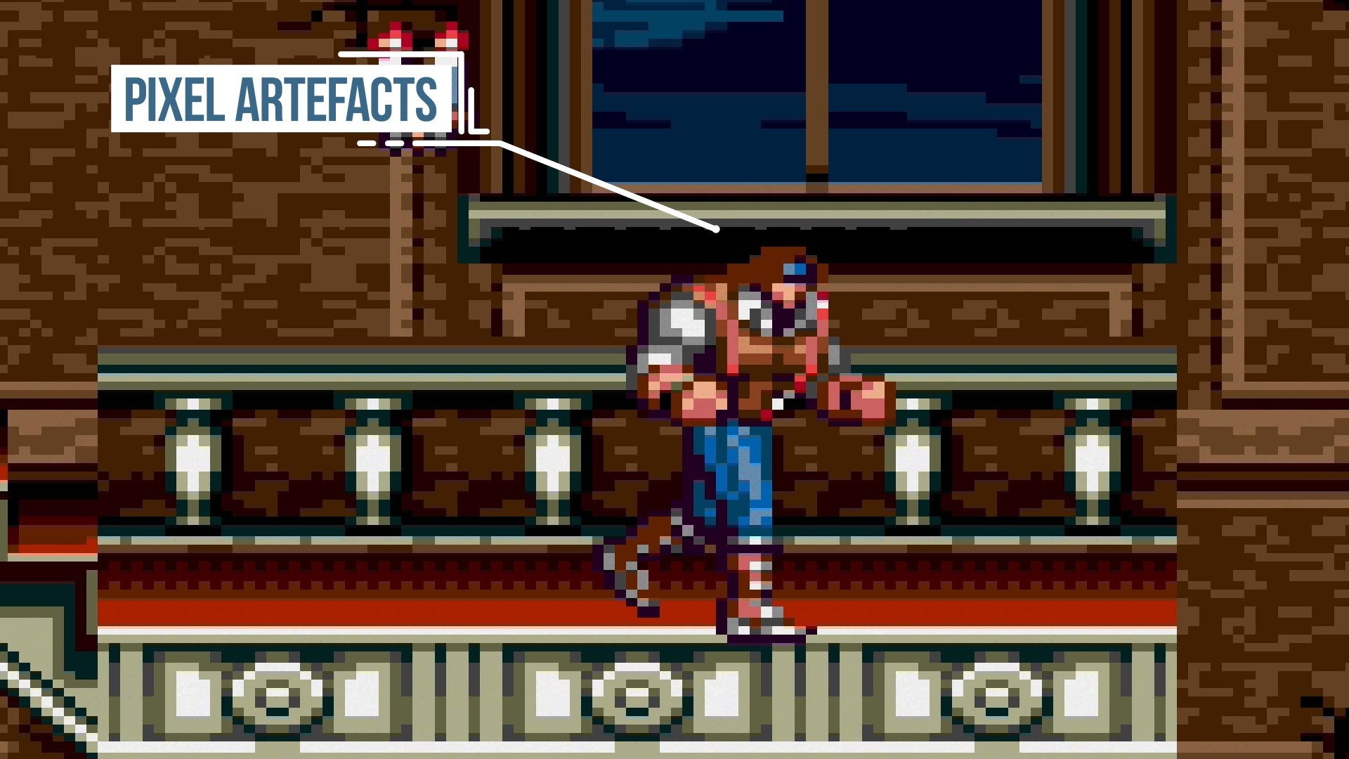 The pillar boxed mode, however, has issues on these games with scaling alternating between 4 and 5x every few pixels resulting in very obvious shimmering during scrolling. So why would you even want to use the wide mode to begin with? I can think of two reasons: you could use your TV's built-in controls to adjust to a proper 4:3 aspect ratio if you're on a flat panel. Or, in a weird edge case, you could hook up the Mini to a proper CRT computer monitor for silky smooth scrolling action. To achieve 4:3, however, you'll need to use the wide mode combined with monitor adjustments to stretch the image to fill the screen. Due to how CRTs work, however, you won't introduce any scaling artifacts since the image is, in fact, not scaled. It looks great, though!