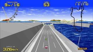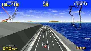 Going back further in time, the original Mega Drive conversion may look rather spartan, but it's an amazing effort for the time. Its 3D visuals were achieved on a 16-bit system by embedding an additional custom DSP chip based on the Samsung SSP160x. This chip contains an arithmetic logic unit running at 23MHz, supporting upwards of 9000 polygons per second - a far cry from the 180,000 polygons per second of the Model 1 board. Regardless, the development team was able to create a surprisingly faithful conversion that features all three tracks, albeit with significant cuts and a 15fps frame-rate. It's jerky by today's standards, but smoother than any SuperFX Nintendo game.