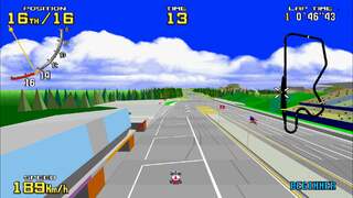 Perhaps the most impressive upgrade lies in how the map is drawn - the original clips polygons at a certain distance to reduce overall load on the hardware but on Switch, the entire track is always drawn. You can see far into the distance during every race. This does reveal limitations in the original modelling, of course, but the effect is impressive and welcome. At the same time, all bitmapped 2D elements are pulled directly from the arcade and scaled using nearest neighboru - at least in single-player mode. The clouds and text are razor sharp and perfectly match the original game.