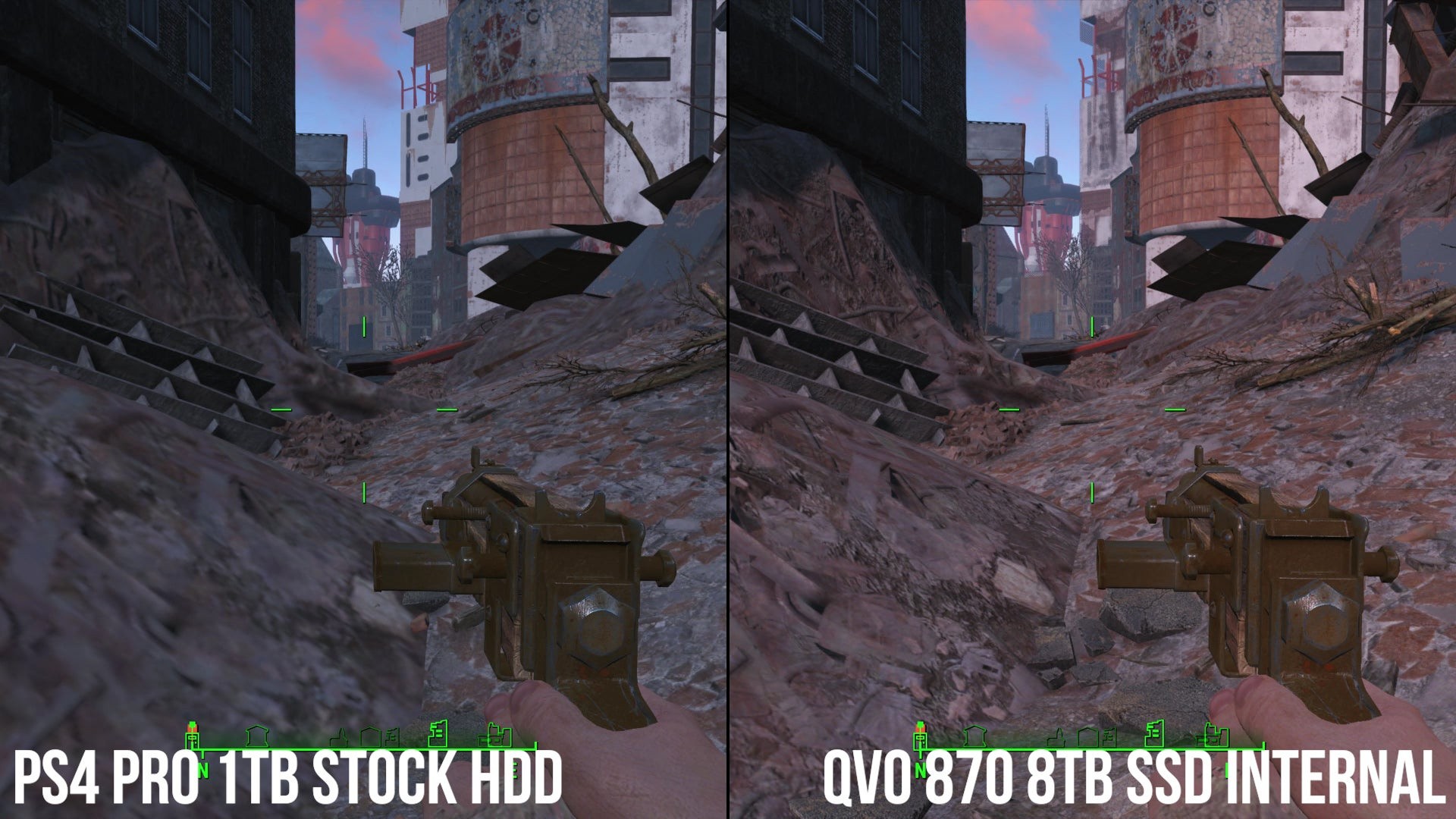 Other more subtle improvements are also evident. On Day's Gone, there are some improvements to texture pop-in during cutscenes. Then there's the storage-bound monster that is Fallout 4. We run a set route of the commonwealth just outside Diamond City, and again, textures underfoot fail to resolve in time as we run over the terrain while the SSD saves the day yet again - faster seek times to its flash memory serve up the assets faster.