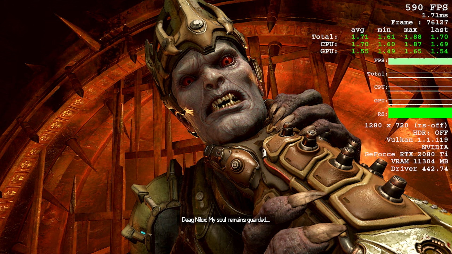 Of course, the PC version is the way to go if you have the hardware as it supports much higher frame-rates all around. I'm running a rather powerful rig equipped with a 16-core Intel i9 7960X and an RTX 2080 Tiso you'd expect greater performance and it's delivered without issue. In the marketing push up to launch, id promised astonishing performance and the team has delivered. In-game performance varied between 300 to 500 frames per second and Doom Eternal becomes one of the very few triple-A games that can actually deliver sustained, consistent performance for high refresh rate screens - up to and including the latest 360Hz displays.