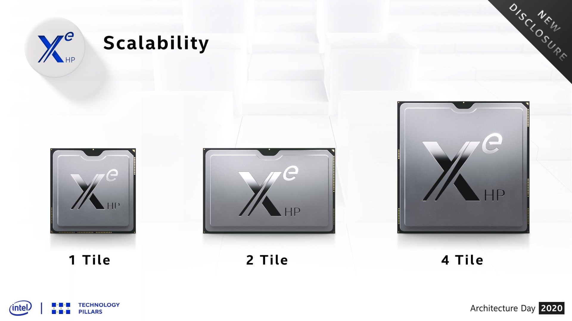 Beyond that, we do get some idea of how Intel may scale its products to deliver a stack of GPUs across the gaming space - but we need to look at its server strategy to get some inkling of how this may be executed. Intel's Xe-HP is what the firm describes as 'the industry's first multi-tiled, highly scalable, high performance architecture'. Essentially, the company is combining multiple GPUs into a single product in a similar fashion to how AMD stacks Zen chiplets together to deliver anything up to 64 CPU cores in a single processor. According to Intel, even with early drivers and low frequency silicon, Xe-HP with four tiles delivers over 40 teraflops of FP32 performance.
