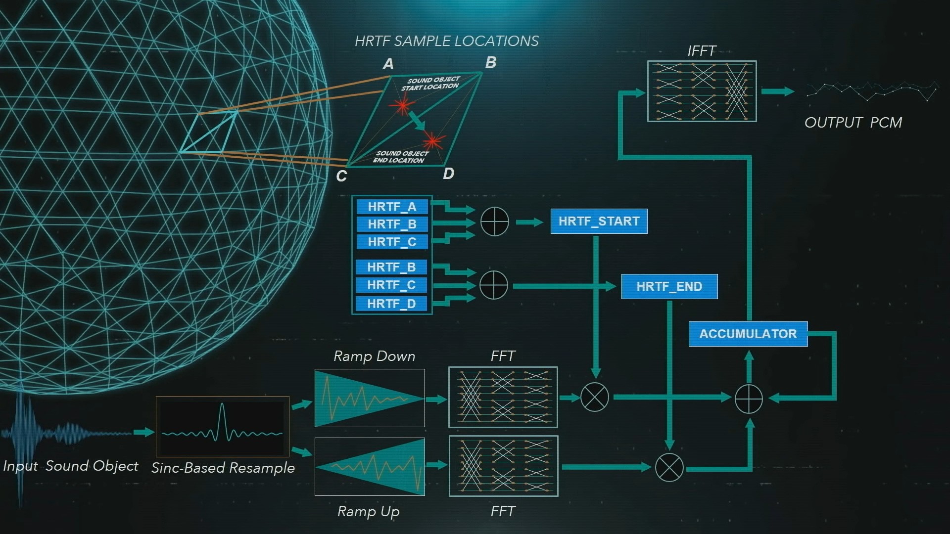 The HRTF essentially delivers a 3D grid with values that can be used to place an object's position according to the IAD and ITD, but it does not have granularity to accommodate every single position. Making the process trickier still is that the human brain is capable of incredible precision and so the algorithms here need to be remarkably effective.