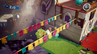So what about the game itself? Well, as always for the series, Sackboy combines real world objects and materials for its worlds. You'll run across wooden planks with realistic grain patterns, you'll swing around on spindles made of spongy material, run through fields of yarn threads, climb on pieces of leather and more. It's all mashed together to create this impressive, detailed world. Like Super Mario 3D World, the camera is fixed and follows up to four players around the environment and it just looks and feels great all around.