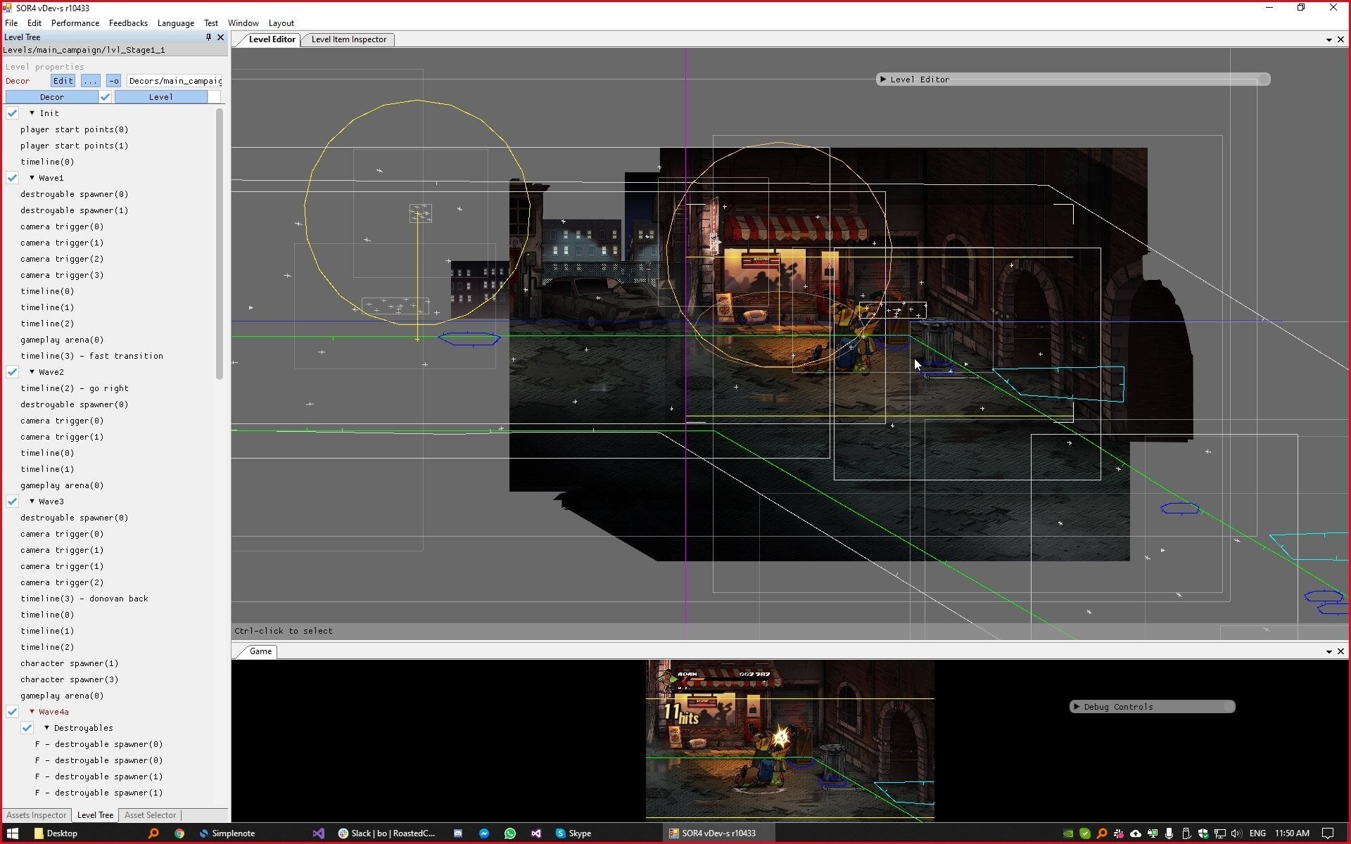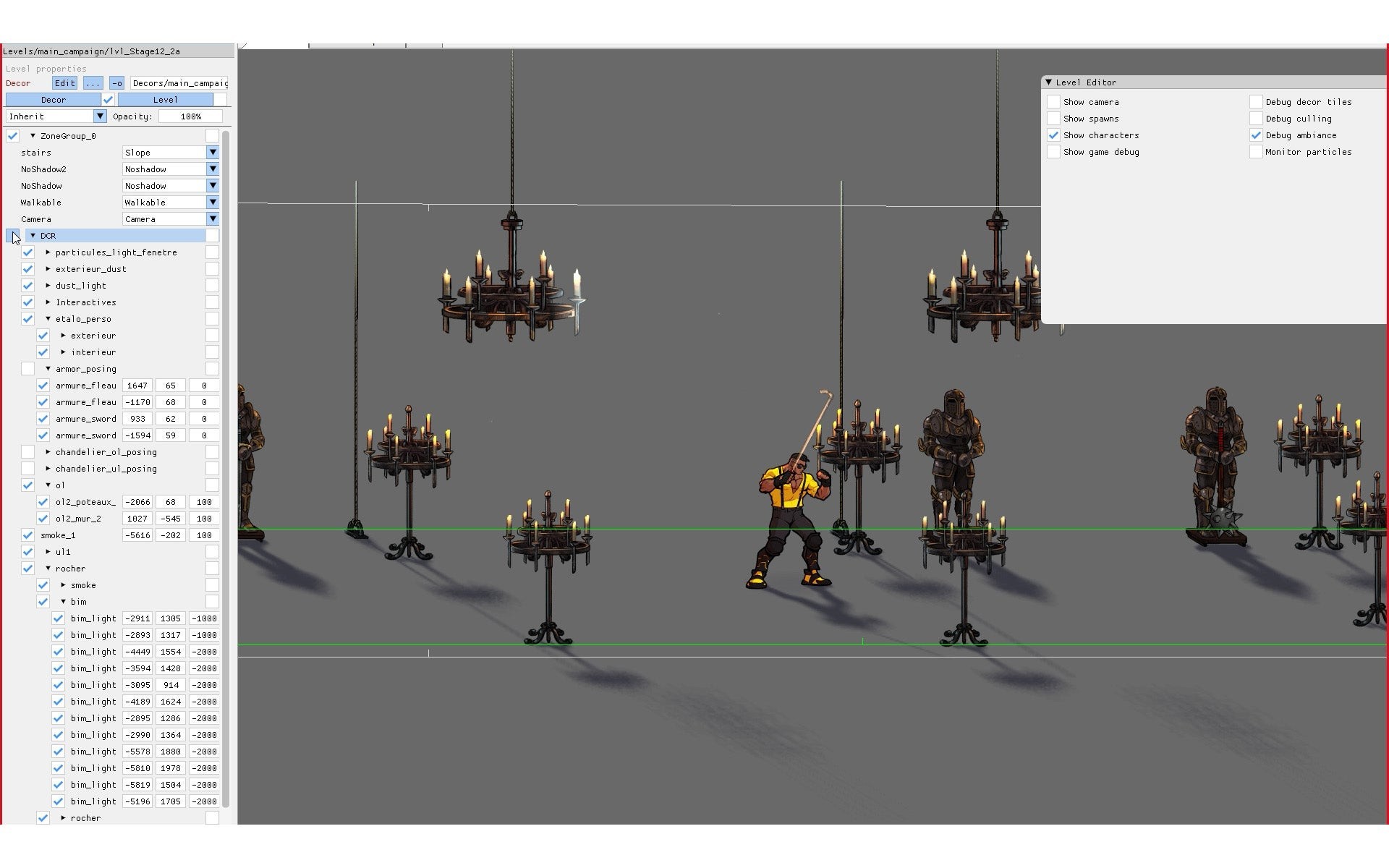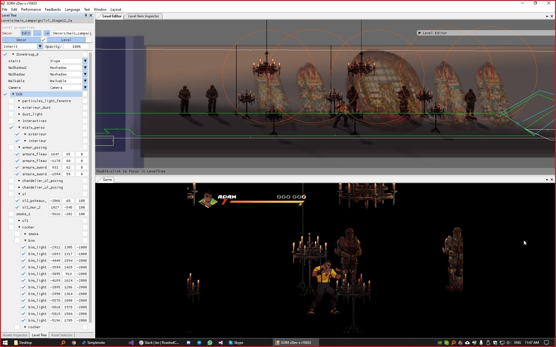 Visually, each level is built from a large chunk of carefully placed art data, along with parallax layers that move independently. The play area is drawn using a fixed perspective designed to add depth but just like the originals, character sprites move in two dimensions visually - there is no scaling here, which I think is the right move. When each level is loaded, the required art data is fetched and prepared for use. With the data loaded, the game requires roughly 2GB of memory, though the PC version has the option to use uncompressed art data which should increase that. The level art is pieced together in the editor to create a long, seamless background rather than relying on a tiling system with reused chunks. During actual gameplay, however, a culling system is used around the viewing window, only drawing artwork as needed.