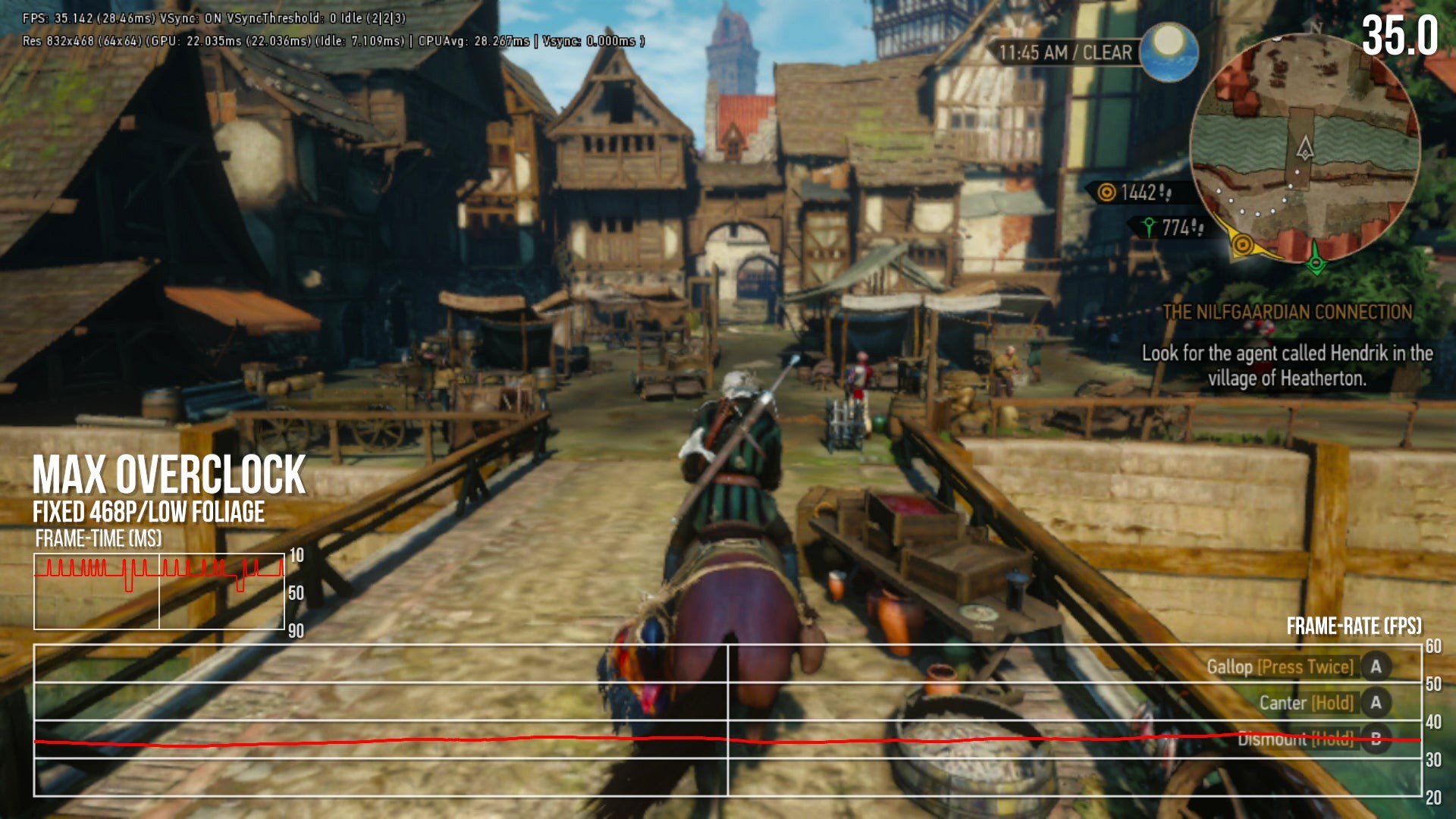 You can see the results in the embedded video. The White Orchard area is the most impressive showcase for how close it gets: as The Witcher 3 operates mostly between 55-60fps. Yes, it looks somewhat plain and barren, but it's still remarkable how smooth the game suddenly becomes. Where the experience starts to unravel is in later, more challenging areas. The outskirts of Novigrad run between 45-60fps but even with the fluctuation it still feels better to play than the regular setup.