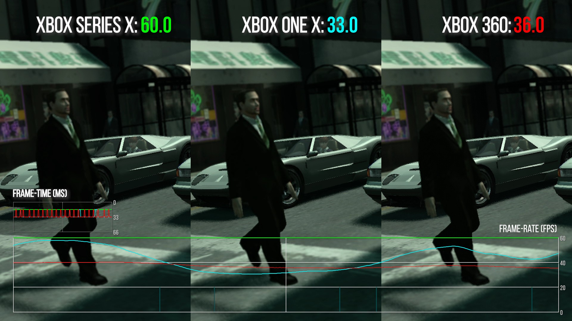 Transformative is a word that often came up when I tested backwards compatibility on Series X - and this can extent to OG Xbox and Xbox 360 titles too. Unfortunately, not many of them are available on the selected range of titles available for testing right now, but one game did catch my eye: Grand Theft Auto 4's performance issues on original hardware are the stuff of legend. In fact, actually understanding its frame-rate is the reason I developed frame-rate analysis tools in the first place. Meanwhile, its back-compat support on Xbox One and Xbox One X isn't particularly great. As the game runs unlocked, One X can power its way to 60fps in graphics heavy scenes, then see performance collapse when the CPU is tested. It produces a highly variable experience and in some respects, even Xbox 360 runs it better. This all changes with Series X which not only locks to 60 frames per second in every scenario I could test it on, it does so with HDR.