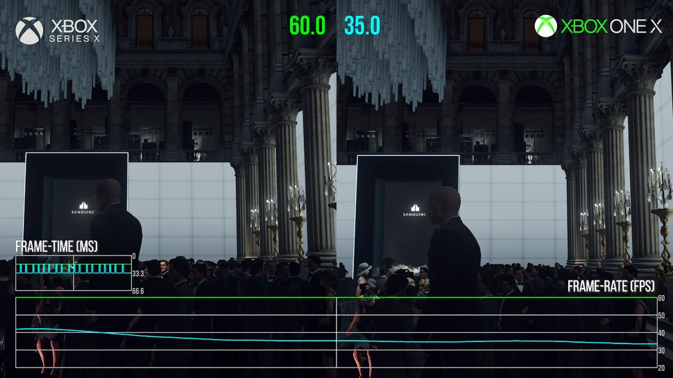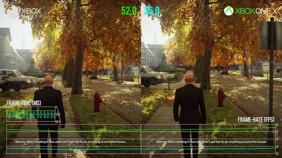 And yes, even the Paris stage in Hitman - another example of where none of the current-gen consoles have the horsepower to deliver much more than 30 frames per second - is mostly a lock at 60 frames per second, despite the huge NPC count in the crowds. However, at the beginning of the stage, Hitman doesn't quite hit a full flat-out level of performance. We've found our first signs of a limit and it's one we can explore a little more in the sleep suburbs of Whittleton Creek in Hitman 2. In 4K quality mode with the optional 30fps cap removed, it acts as close to a console benchmark as you can get - and even on Xbox One X, this stage can dip beneath 30 frames per second. Scaling on Series X adjusts dynamically depending on content but we're looking at anything between 75 per cent to over 100 per cent more performance. There's been some discussion - prompted by Mark Cerny no less - of how developers may struggle to scale workloads over many compute units, but in many of our tests, we saw point blank that this is exactly what is being delivered.