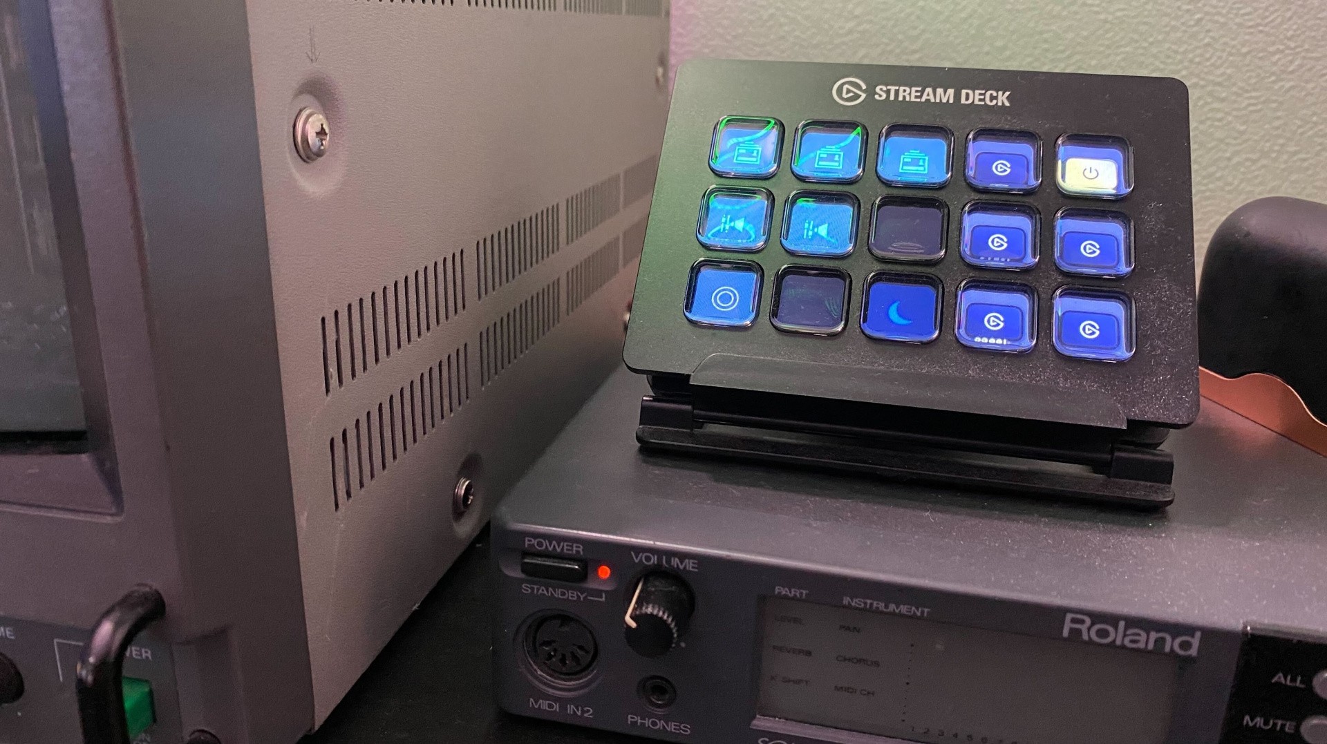 When it comes to lighting and audio management, then, I use the smaller of the two Stream Decks. I have it configured with several different lighting levels and colour temperature choices, since it integrates neatly with the Ring Light, as well as the option to mute various audio channels when doing a livestream. The Deck uses an LCD panel with dividers to create the illusion of 15 unique buttons. Each button can have its own custom graphic assigned via the Stream Deck software, making it easy to tell at a glance what each button does and make changes as necessary to suit new equipment or different use cases.