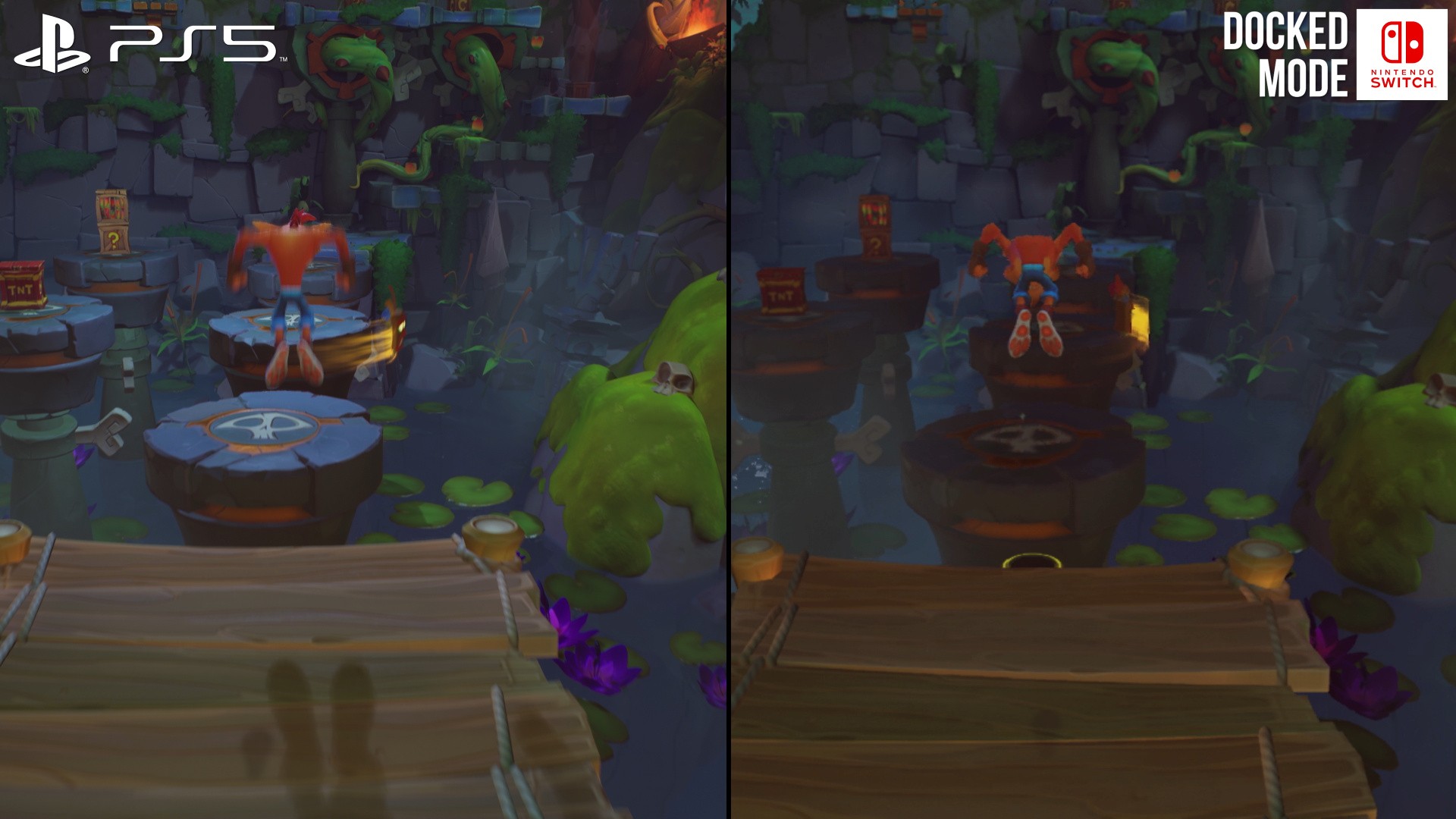 Performance is mostly locked at the expected 60 frames per second on PlayStation 5 and any drops to frame-rate are mostly limited to cutscenes - so noticeable but in no way impactful on the way Crash 4 plays. Switch, meanwhile, might be capped at 30fps but the result is very consistent. When performance irregularities emerge, it's typically in the form of a few dropped frames and some 16ms spikes - incorrect frame pacing. Fortunately, this isn't a regular occurrence during normal play. I suspect that this is what we'll see with the conversion of Tony Hawk's Pro Skater 1 and 2 when that arrives on Switch, as that too is a UE4 project. Returning to Crash 4, portable mode runs much like docked - though where the full power experience has performance issues, these are magnified when gaming on the go. Aside from those brief sections, however, it's still 30 frames per second and mostly stable.
