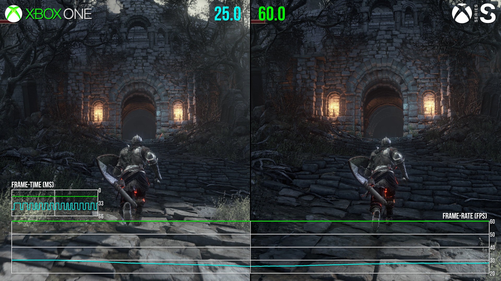 The result? From playing the opening hours of the game, it performs near-perfectly on both Xbox Series X and S. Practically every major locale, including the fire-spewing dragon on the High Walls of Lothric, is delivered at a smooth 60fps. And yes, that applies to both consoles as by and large, Xbox Series S runs identically to Series X for the vast majority of play. The only exception I could find was a single, brief drop to 53fps during an early fight with a mutating creature on the Lothric roof. Heavy alpha effects buckle Series S only momentarily, while this spot's not an issue at all on Series X. The results are excellent all round, but Series X has a very slight edge in consistency with the fringe cases.