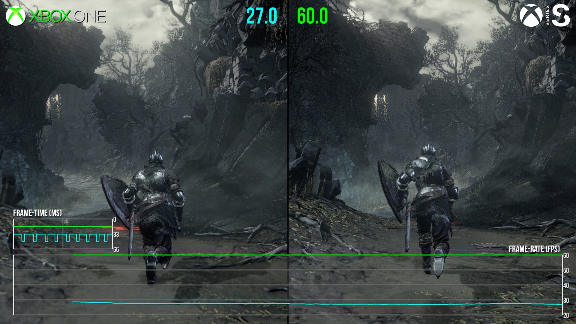 FPS Boost isn't enough to fix all of Dark Souls 3's problems on Xbox, but it's a still a massive improvement to the game as the 60fps upgrade works handsomely. Also, there's a tangible benefit to playing on Series X and S due to the faster loading times afforded by its faster SSD media. Fast-travelling from the initial Firelink Shrine to the High Wall of Lothric gets chopped almost in half, down to 6.7 seconds on Xbox Series X, versus the 12.3 seconds on the older Xbox One X. Not bad.