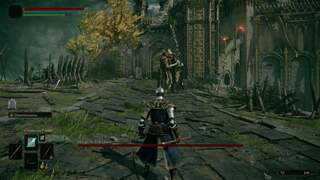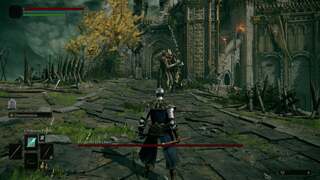 The fact is Elden Ring is still closest in its DNA to Dark Souls, in its challenge and combat. In the thick of battle, controls are mostly unchanged from Dark Souls 3, with a pinch of Sekiro in the form of a jump button - and a crouch mode for stealth. Otherwise, the lock-on system, the invincibility frames on side rolls, the careful metering out of stamina for light or heavy attacks, the guarding and the dodging. It's all there. Even bonfires make a return - now named Sites of Grace - to let you respawn after death. And yes, there's a lot of dying. From the Tree Sentinel to the flying dragon of the marshes, Elden Ring demands a keen eye for spotting attack patterns. Practice, anticipation and reaction are required. Expect a firm challenge. Existing Souls fans will find a comforting familiarity in its difficulty. But for the uninitiated, there's no escaping it. You will have to learn Elden Ring's controls, the rhythm of Souls combat, to rise to the challenge.