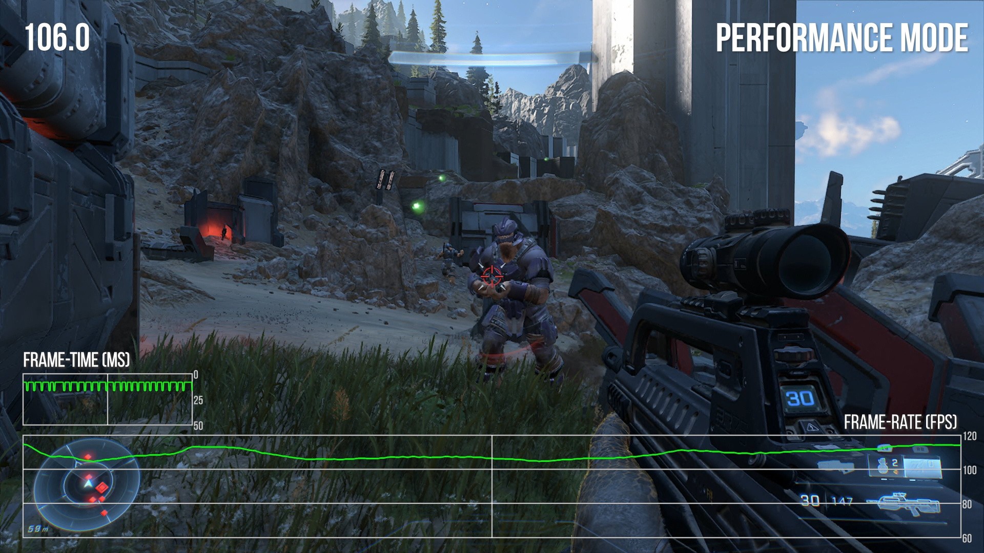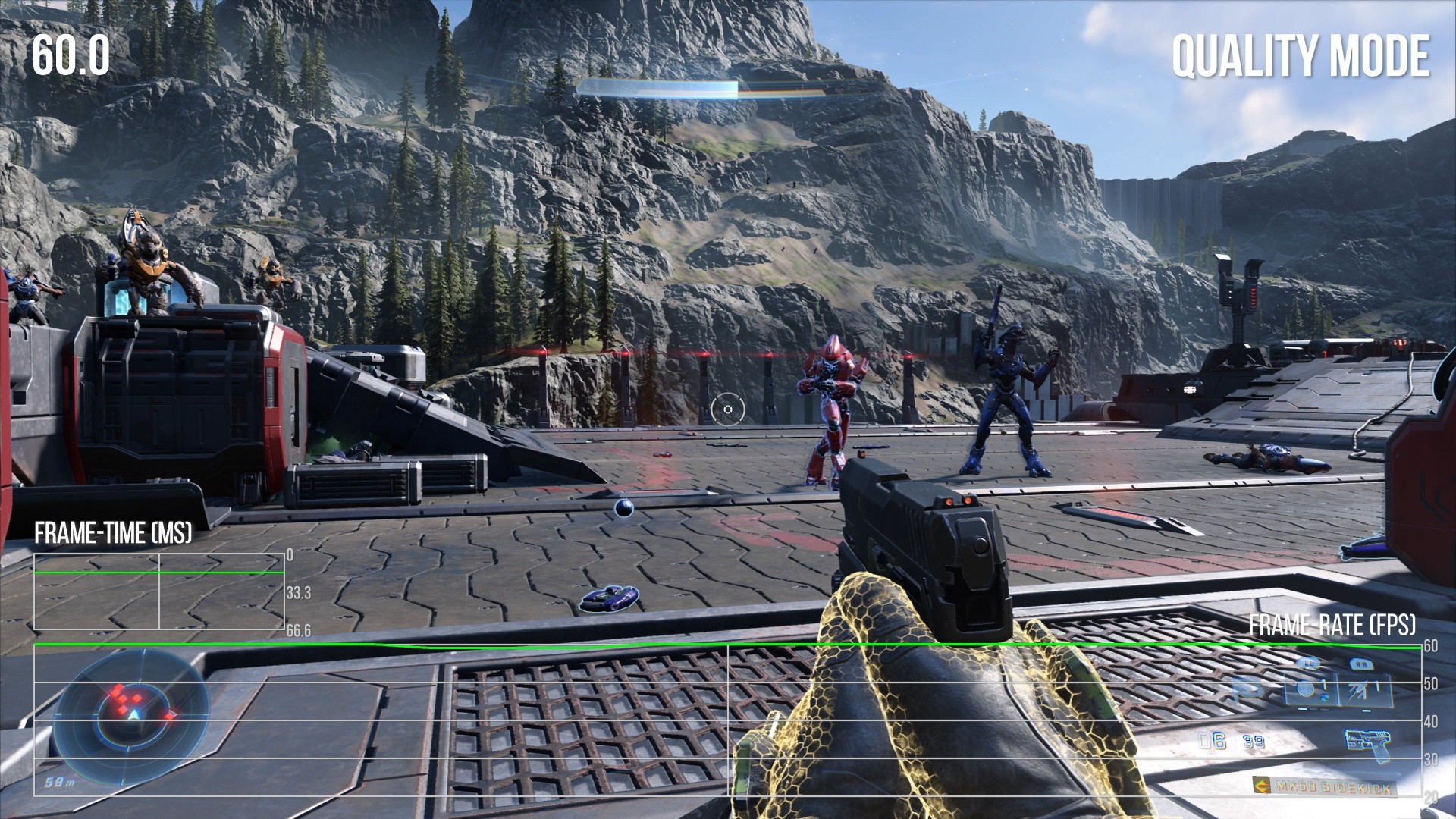At this point, maybe we should go back to rendering basics. This piece is mostly based on my experiences playing Xbox Series X - so expect my colleagues to present a cross-platform analysis soon. Two modes are offered on Microsoft's top-end console. Quality mode at 60fps is the best way to play. It leans into dynamic resolution to maintain performance, much like Halo 5, but the game always looks crisp and doesn't seem to drop beneath 80 percent resolution scaling on both axes. Performance mode aims for 120fps with a max resolution of 1440p but minimums can drop beneath 1080p when things get heated. With the exception of occasional frame-drops, the quality mode is fine running at 60fps, but performance is far more variable in performance mode. Normally, the system's variable refresh rate support would handle any resulting stutter but in my experience, it doesn't work with Halo Infinite - something that needs addressing.