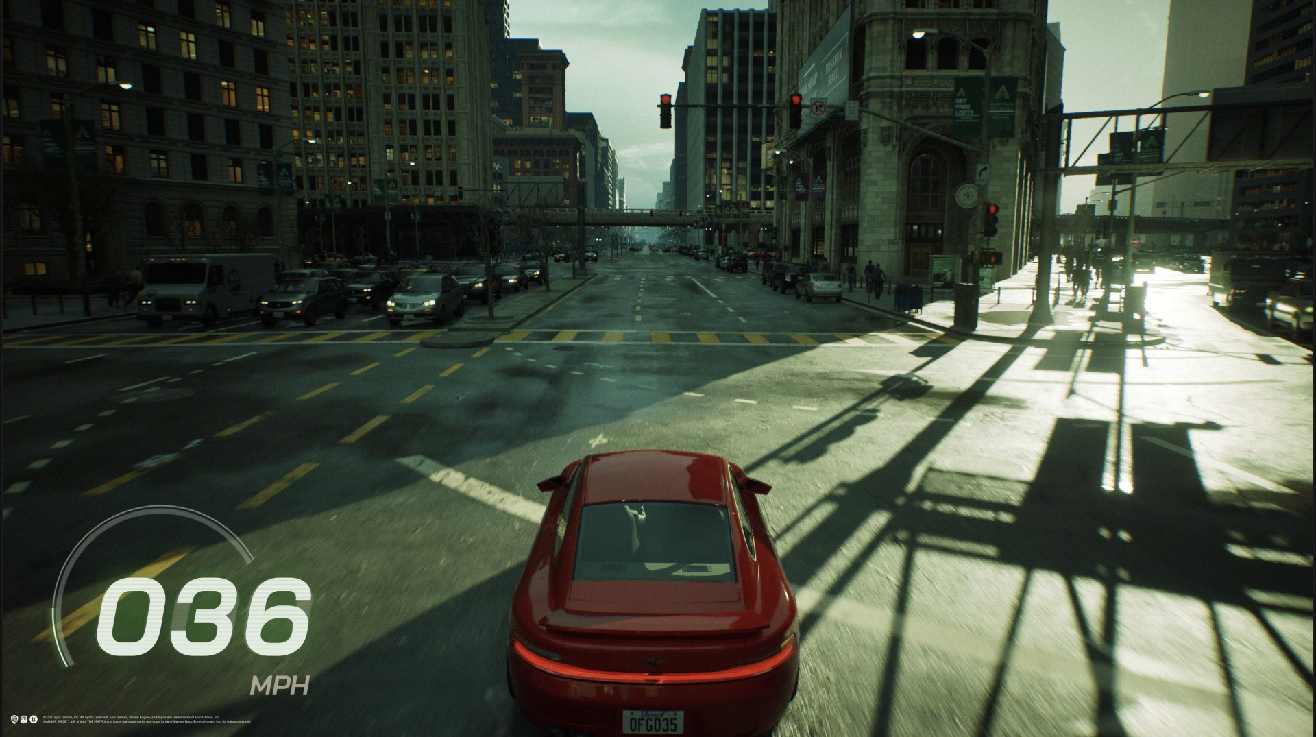 What this translates to is a fully persistent population within the world - every entity can be tracked individually. Typically, in a traditional open world game, if you move away from the immediate area then come back, the pedestrians and traffic would be entirely different. That's not the case here: Epic's Mass AI system handles everything at scale. The only compromise to this is that the update rate of each agent varies according to its distance from the player. Even so, it's hard to see time-sliced compromises even at distance based on our experiences.