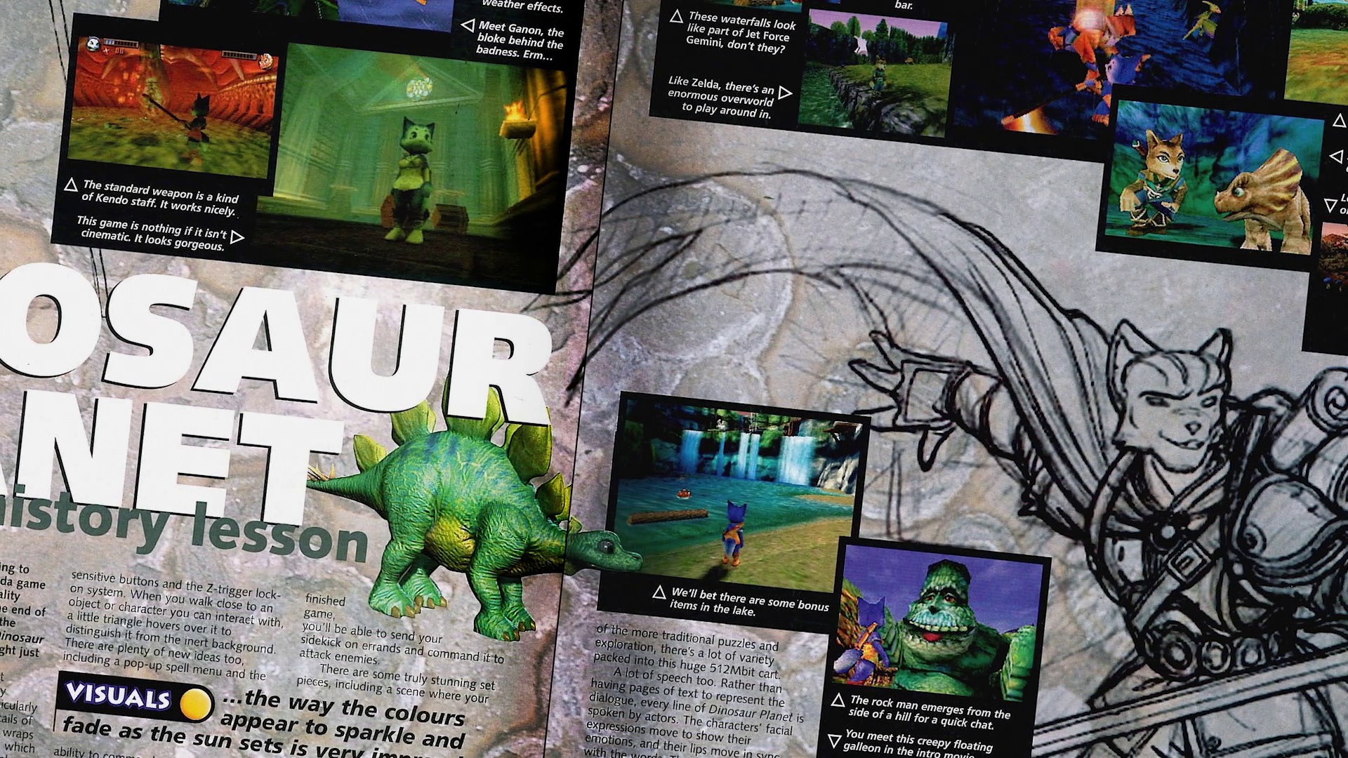 Magazine articles teased a multi-character, Zelda-style action adventure set in a beautiful dino-inhabited world. It was shaping up to become one of the largest games Rare had ever produced but before it reached the finish line, the game was cancelled and development shifted to the Nintendo GameCube, where it became Star Fox Adventures. Dinosaur Planet became a 'lost' game then, never properly seen outside of Nintendo until recently, when a surprisingly complete build salvaged from development hardware appeared.