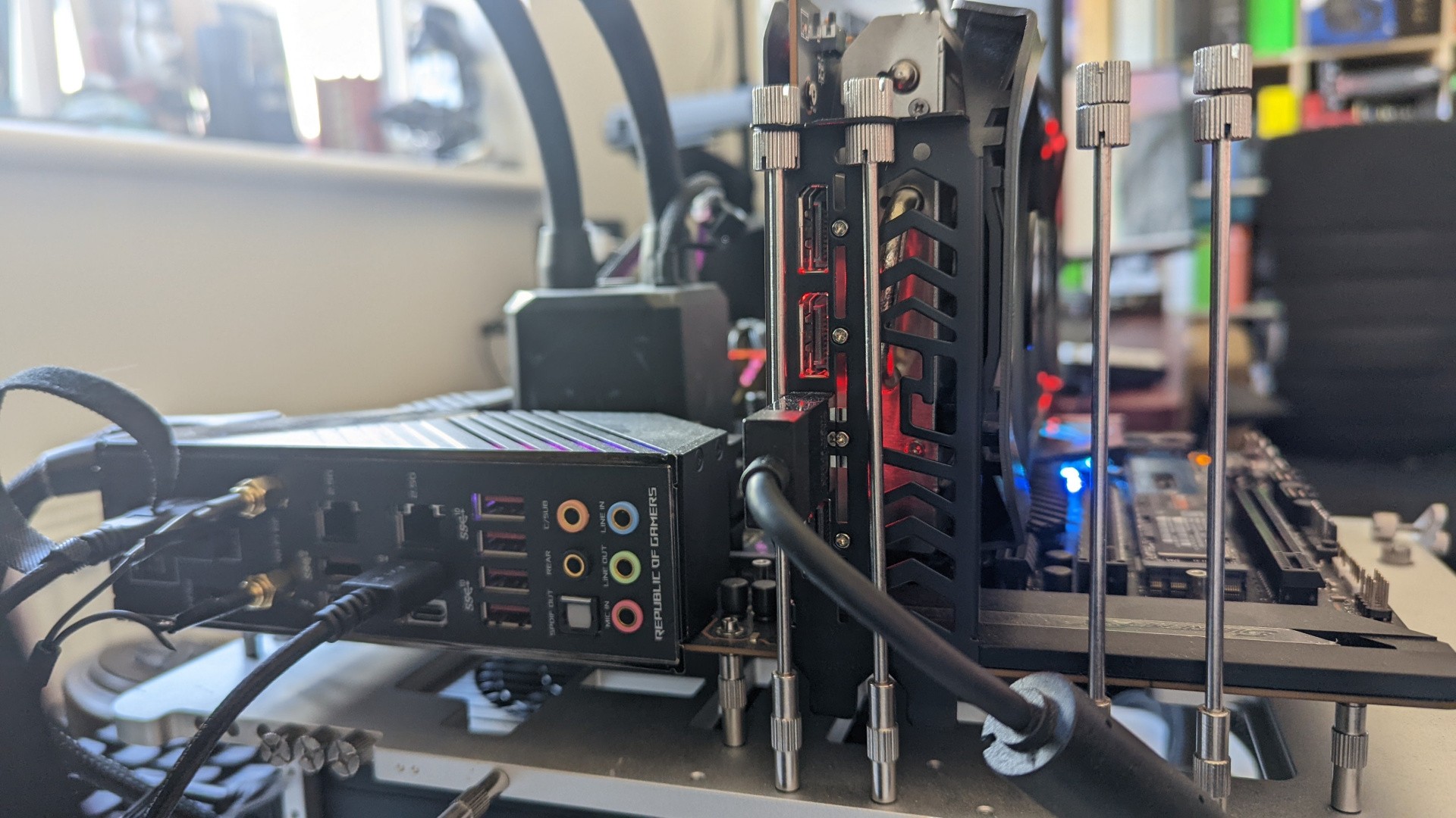 On our unit, one of the card's three fans seemed to have been damaged in shipping, as it knocked into the side of the shroud at low fan speeds. Thankfully, the card has a zero RPM mode at idle and doesn't knock once it hits around 50 percent fan speed, so this didn't affect performance and the card's temperatures remained low (and clock speeds high) throughout.