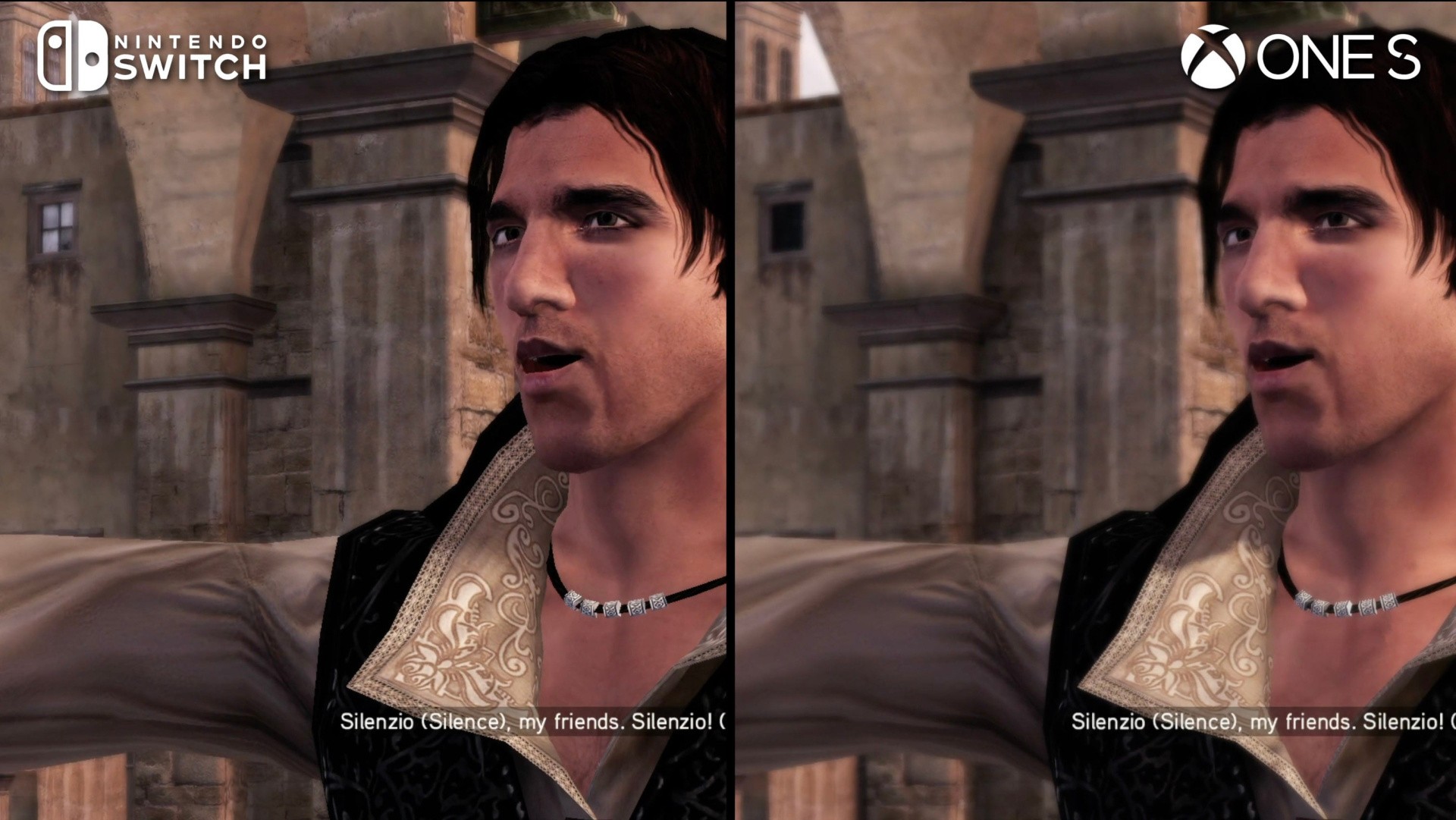 Unfortunately, there is one final oddity here, and that's the audio mix. Both the original game and Ezio Collection had a cinematic audio mix, with loud music and explosions, and comparatively quiet dialogue, with a mix that carried all these elements with a wide dynamic range. Some of the detail seems to have been lost here, and the dialogue is much louder in the mix in some scenes. The audio compression issues present in other Assassin's Creed games on Switch seem to have made a return here. Many scenes still sound fine, but others are noticeably degraded.