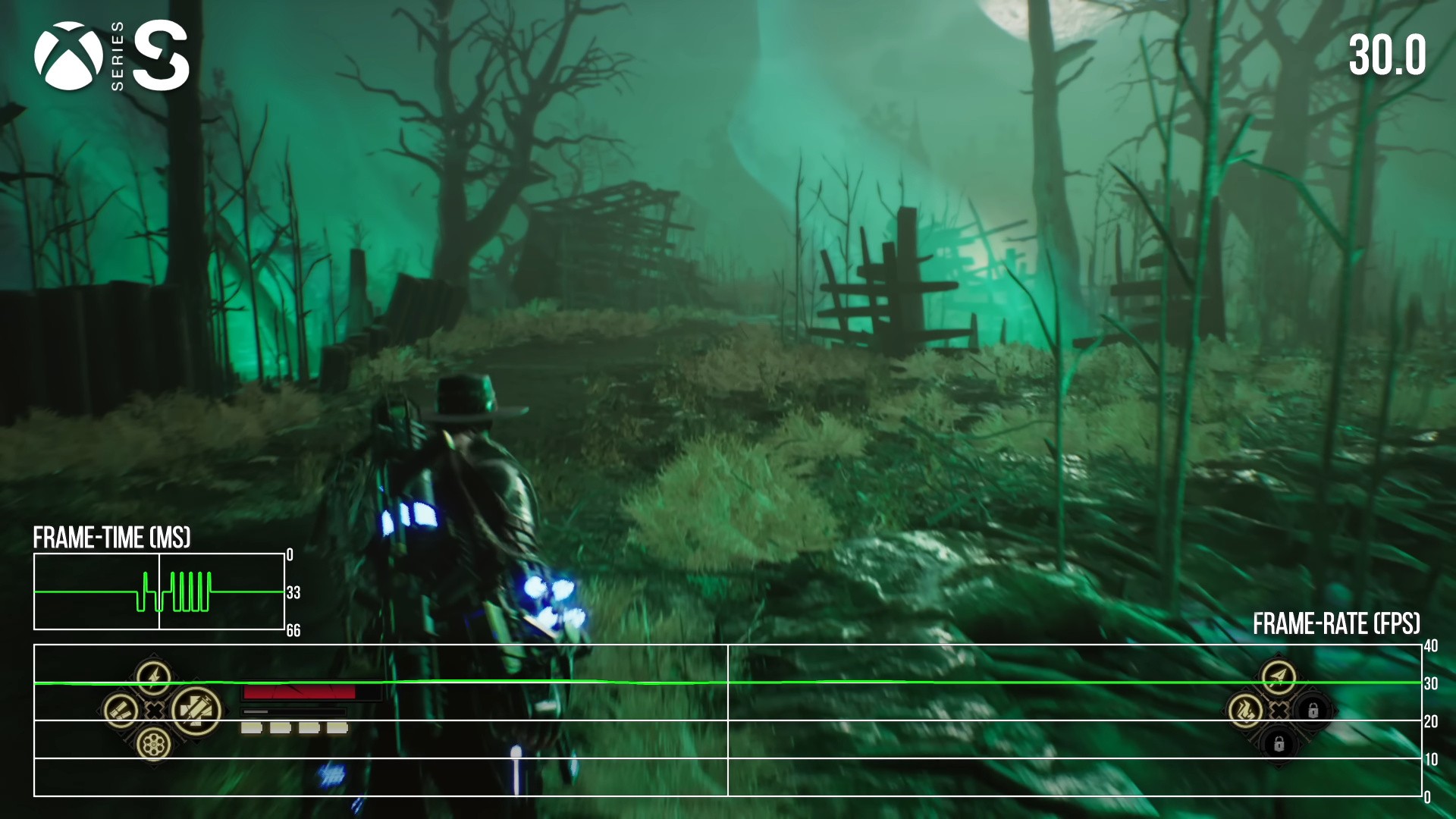 Overall I'm pretty pleased with Evil West's graphics, but image quality and performance are a bit more fraught. According to Focus Entertainment, there are 4K30 and 1080p60 modes on Series X and PS5, with Series S limited to just 1080p30. That doesn't seem great for a cross-gen title, as something like 1440p60 or above would be typical for most similar efforts on PS5 and Series X, often paired with a bit of upsampling to resolve a more detailed image than the base resolution would imply. The 4K30 mode at least seems like roughly par for the course, if a bit unexciting. However, the reality is more complicated. The Series X and PS5 versions in their quality modes look coherent and stable but a little on the soft side and pixel counts show a 1728p resolution on both PS5 and Series X instead of 2160p, which explains this discrepancy. The performance modes do clock in at 1080p as promised, as does Series S.