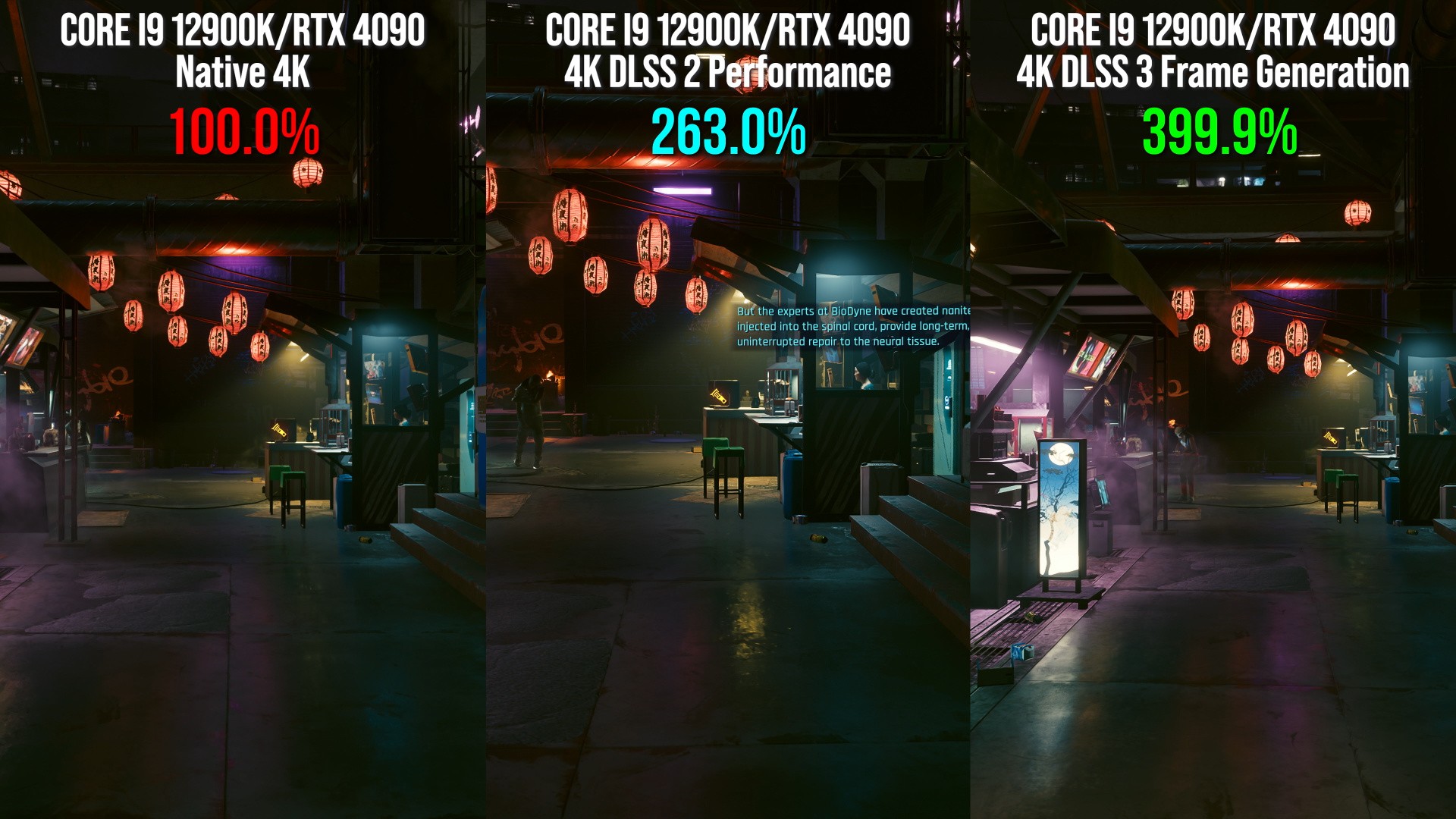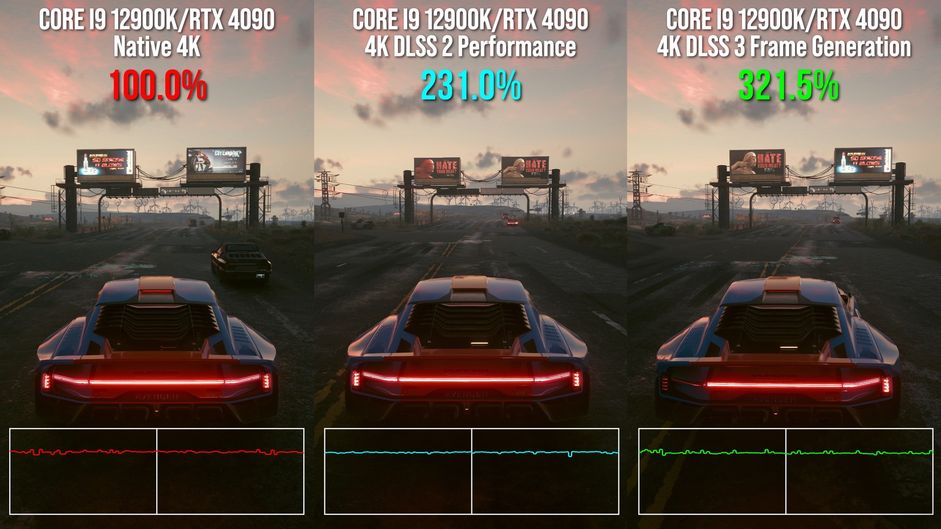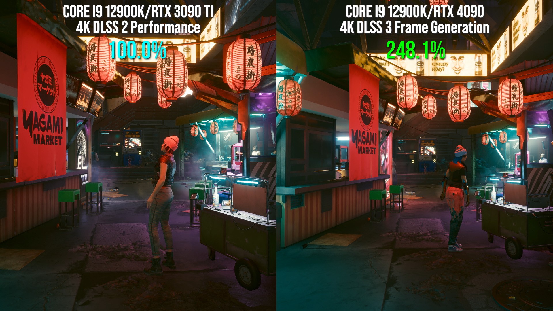 | RTX 3090 Ti DLSS 2 | RTX 4090 DLSS 3 | |
