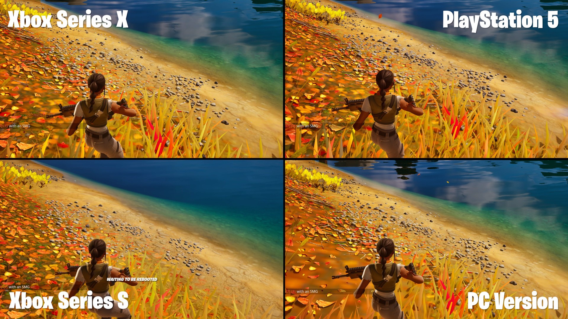 Series S is understandably lower-res, with an internal resolution of 540p to 1080p, averaging 73 percent of 1080p, but also loses reflections on glossy surfaces (eg water), the resolution of some effects is lower and there's also a reduction in ground clutter. Honestly though, Series S looks surprisingly similar to the Series X and PS5 versions. It's the omission of Lumen reflections that is most impactful - bodies of water can lose all reflections depending on the angle as it's reliant just on screen-space information.