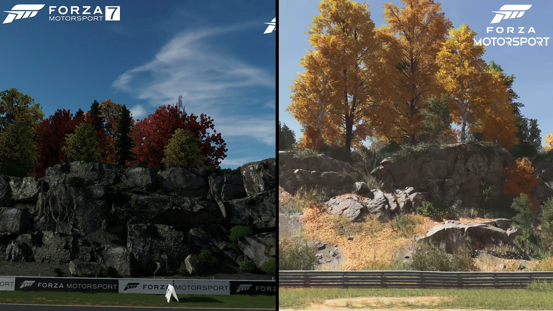 Beyond the strategies to make 4K 60fps with RT possible, the demo also showcases changes to Forza that look to take advantage of the newer hardware found on PC and Xbox Series consoles. One big change is a dynamic time of day system, which requires the game to be re-lit in real time - something that would have been a massive performance sink on earlier consoles. Similarly, there's a big boost to trackside detail, with more spectators, objects and even proper 3D trees with individual branches and real-time self-shadows. Zooming in to a shot of a road with cones reveals upgrades to the shading model, which exhibits much more material variation. While road and cone had a similar texture in FM7, each is shaded differently now, and the cone's plastic even includes a simulation of subsurface scattering; the thinner areas of the plastic let light through. Given detail differences like this, I am very curious about how other aspects of the game are detailed and shaded up-close, like crowds or pit crews.