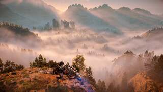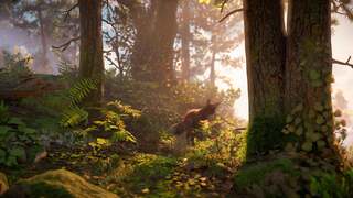 Wind and weather also enhance these elements - the intensity of the wind varies at random directly impacting the plants and trees around you. It creates a very active, lively scene in motion. When the rain picks up, everything whips around violently while a wetness shader is blended into the material surfaces. The weather varies based on the biome you're currently exploring as well - as you make your way up a mountain, rain will turn to snow, for instance. If you're caught out in the desert, you'll even encounter sandstorms.