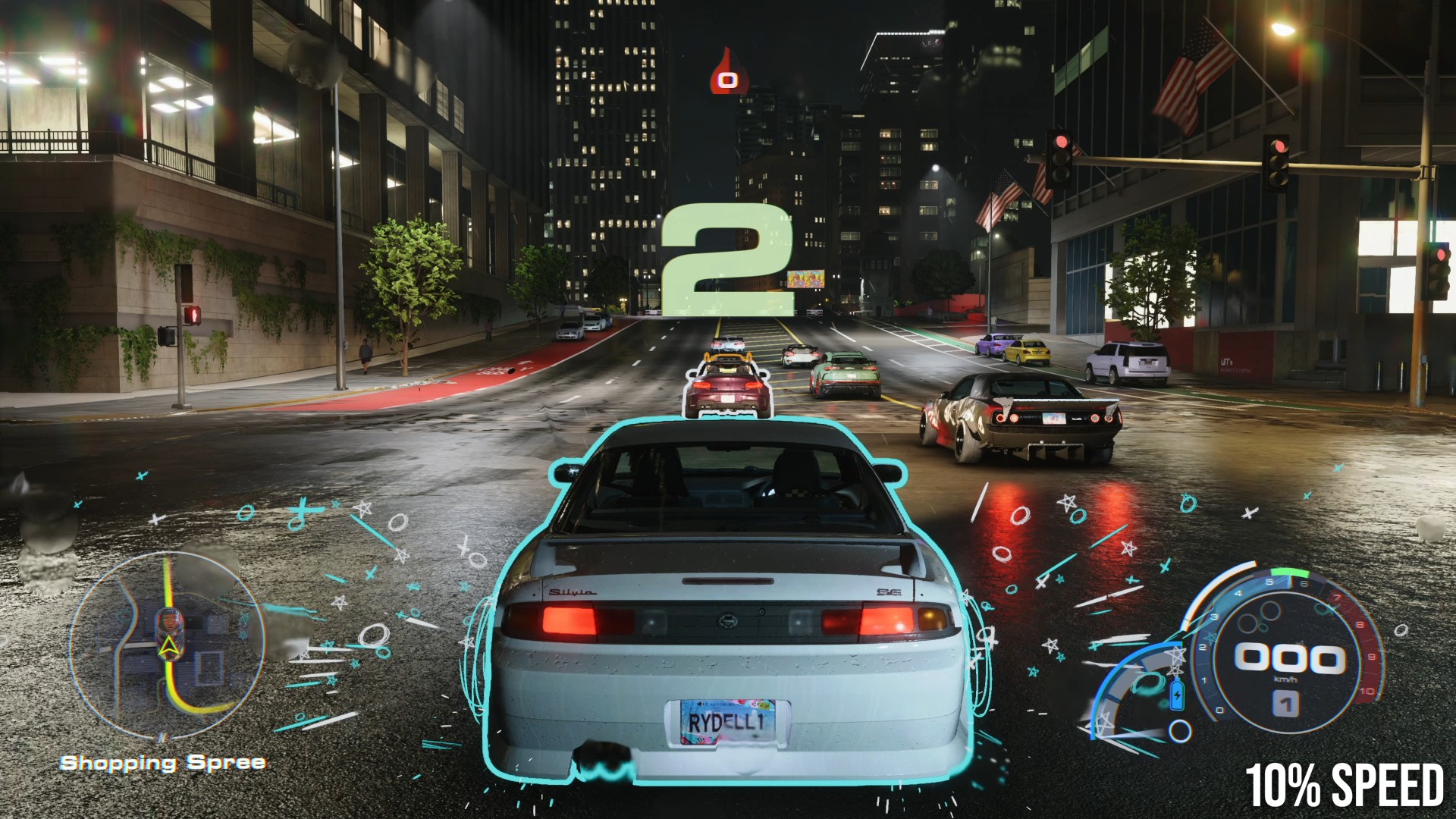 Some effects are more static, 2D art sketched over your car, like angel wings appearing during a jump, while others are keyframed effects like tire smoke that have a smoother appearance and often mimic the look of cel-shading. I was worried these effects might be overwhelming, but they're used somewhat sparingly to highlight key gameplay elements like drifting or colliding with another vehicle - and they add a lot of impact or excitement to a game that might otherwise look quite similar to other racing franchises.