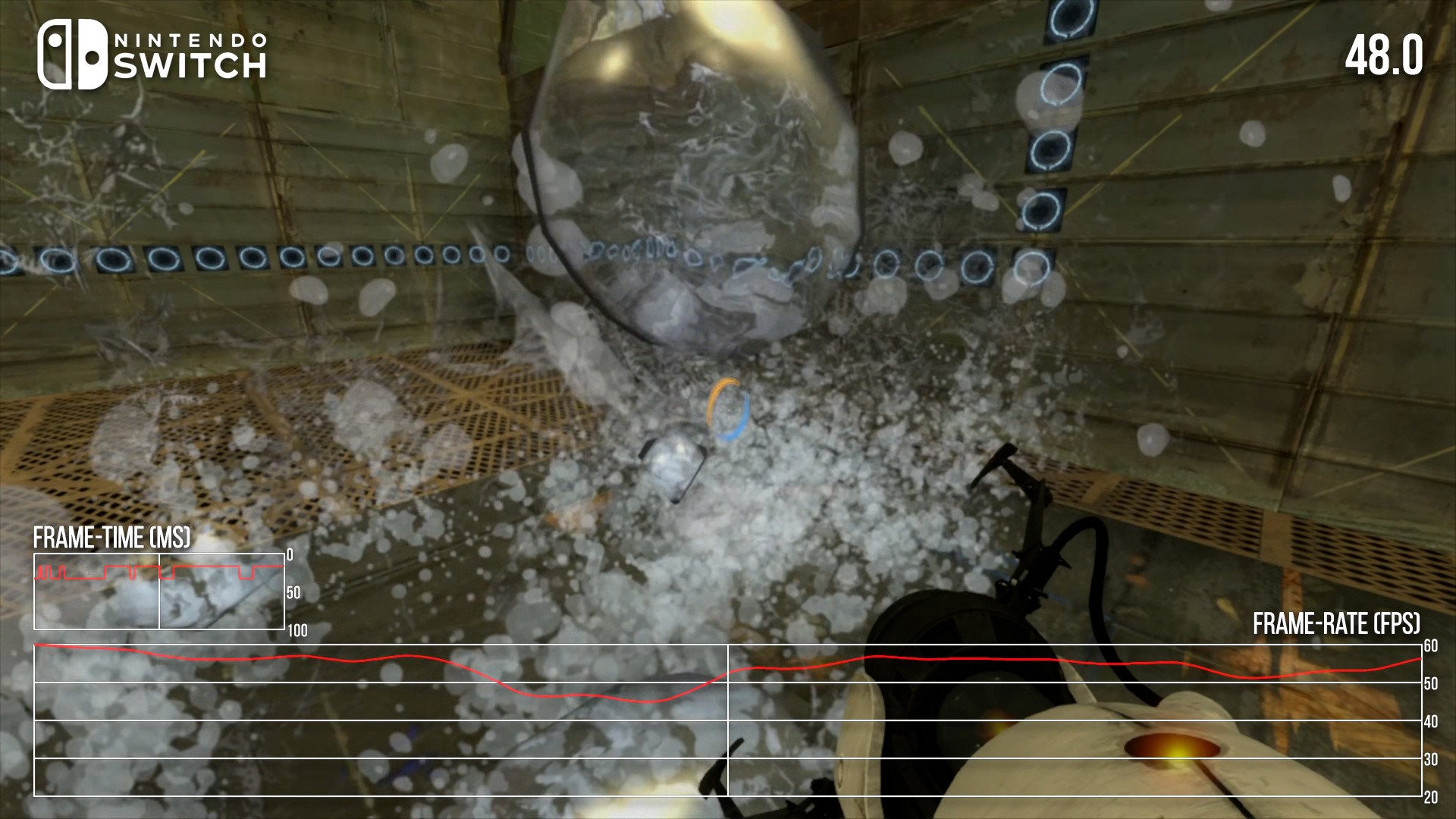 Portable mode mostly clears up these performance concerns. Portals run just fine in handheld mode, while the slight stutter during traversal is rarer. It runs very well indeed - essentially a locked 720p60 in typical play. The combination of the higher performance target alongside boosted image quality really makes this port special. The Switch is well suited to the demands of seventh-generation console titles, and typically delivers resolution enhancements in ported games. However, the doubling of frame-rate is much less typical and impressively, we get a 720p/1080p split across portable and docked play as well. It's a very impressive effort.