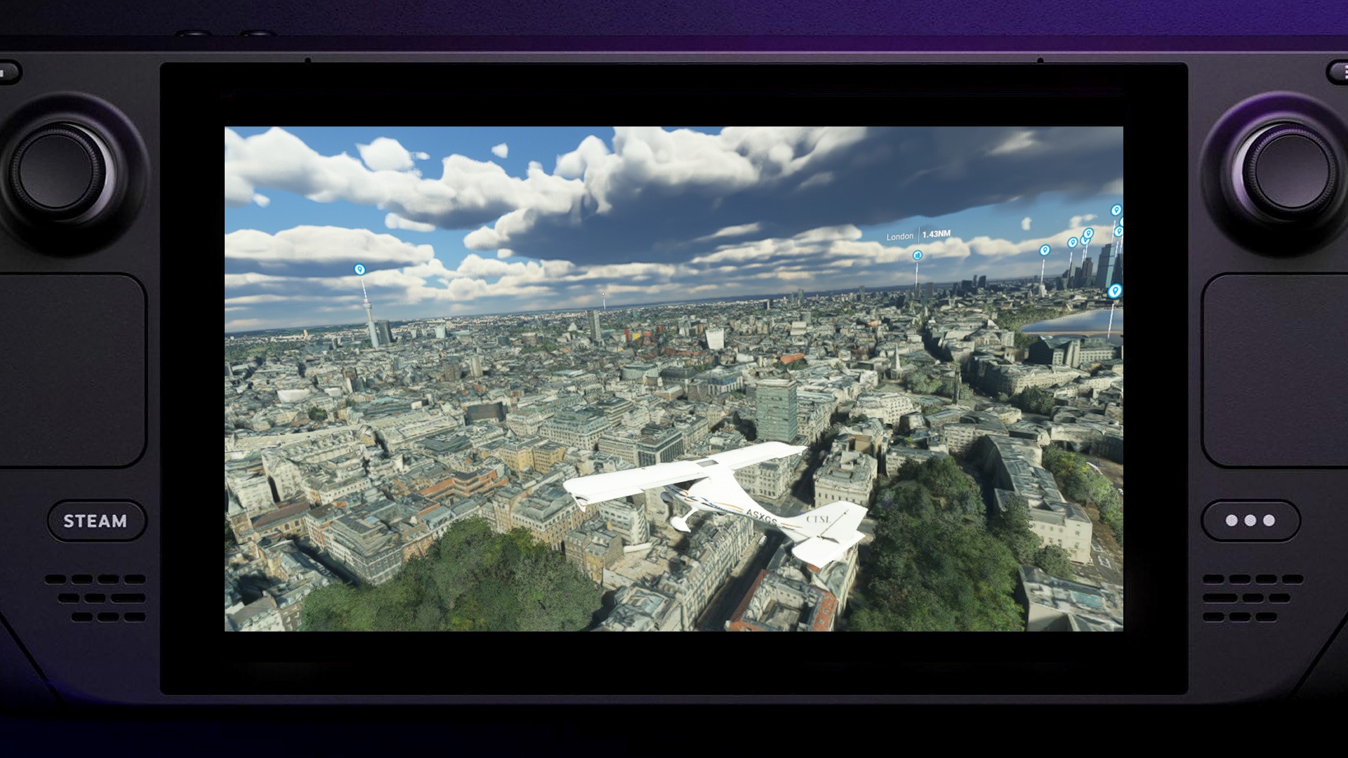 I also wanted to try the path traced version of Minecraft, but once again fell foul of the Windows Store not working properly (nothing to do with Steam Deck) but thankfully, Microsoft Flight Simulator is also available on Steam, meaning that I could one of the most challenging PC games through its paces on the Valve handheld. I'd seen YouTube videos of this game running reasonably well on its lowest settings, but my objective was to get an experience that could match Xbox Series S's quality settings - a mixture of low, medium and high, along with curtailed object level of detail and terrain level of detail values. Those latter settings can't be matched because Asobo Studio used a dynamic range of between 25 to 50 - so instead, I used a mid-point, 35. I also dropped back the volumetric clouds setting from high to medium, as it's an excessively taxing system. Resolution? Again, I leaned into temporal upscaling, from 612p scaled to 720p. That's up against native 1080p on Xbox Series S.