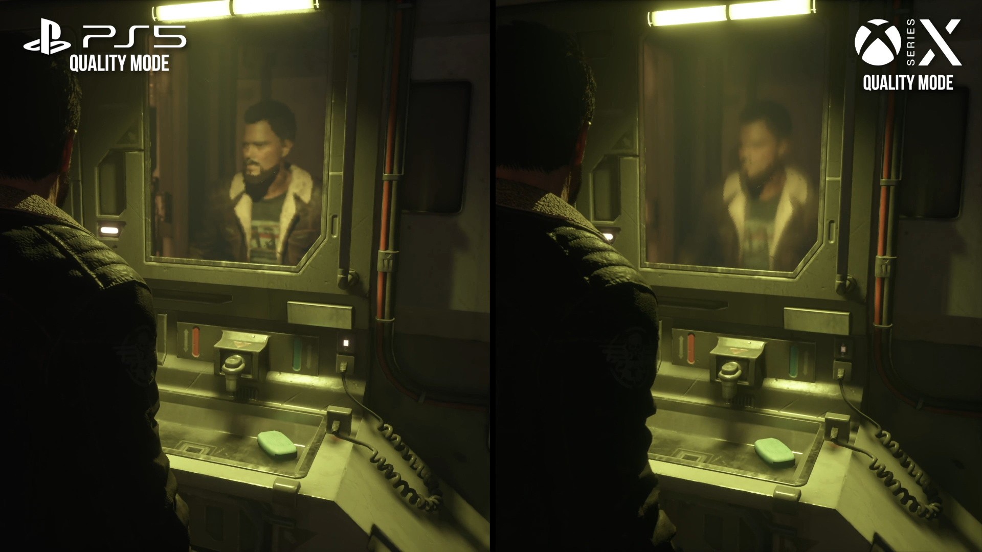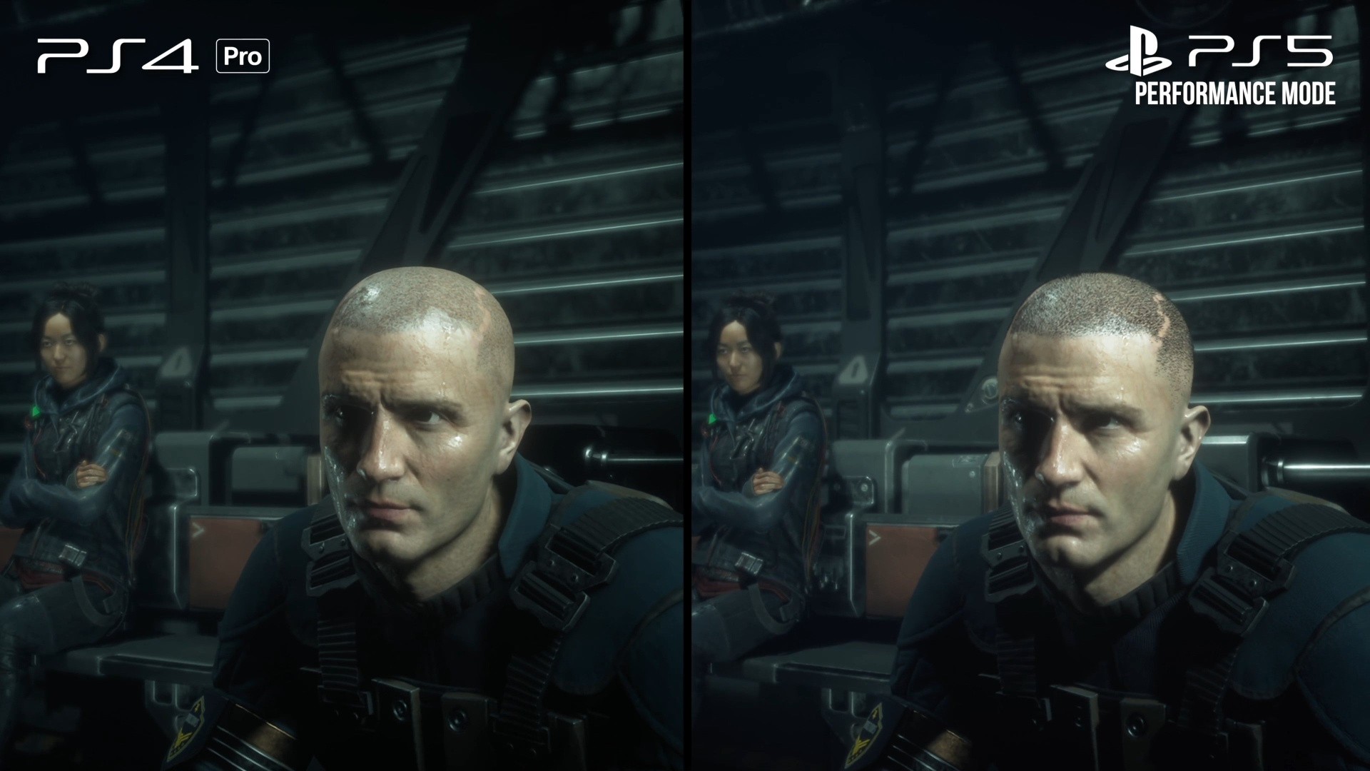 Hair quality is reduced as well. Larger volumes of hair look similar across current and last-gen, but sparse hair has a very different appearance. The main character's beard looks much fuller on current-gen consoles, for example, and Sam Witwer's closely-shorn hair seems to be represented with 2D texture detail on last-gen consoles, while on PS5 and Xbox Series it has visible strands. Those are the obvious visual differences between last-gen and the current-gen versions without ray-tracing - but what if we bring in the PS5 version in its higher-quality mode, with all of its RT effects enabled?