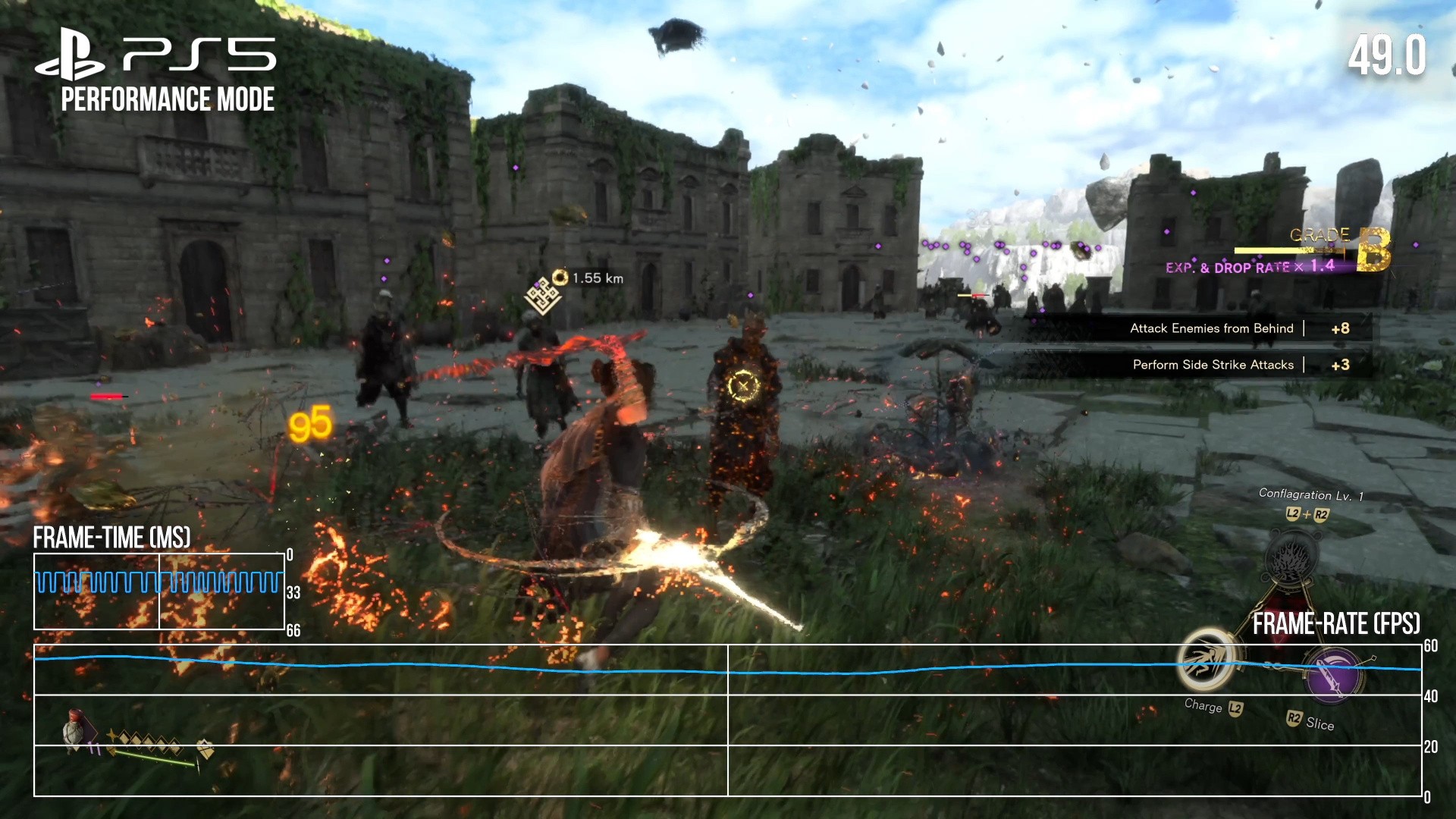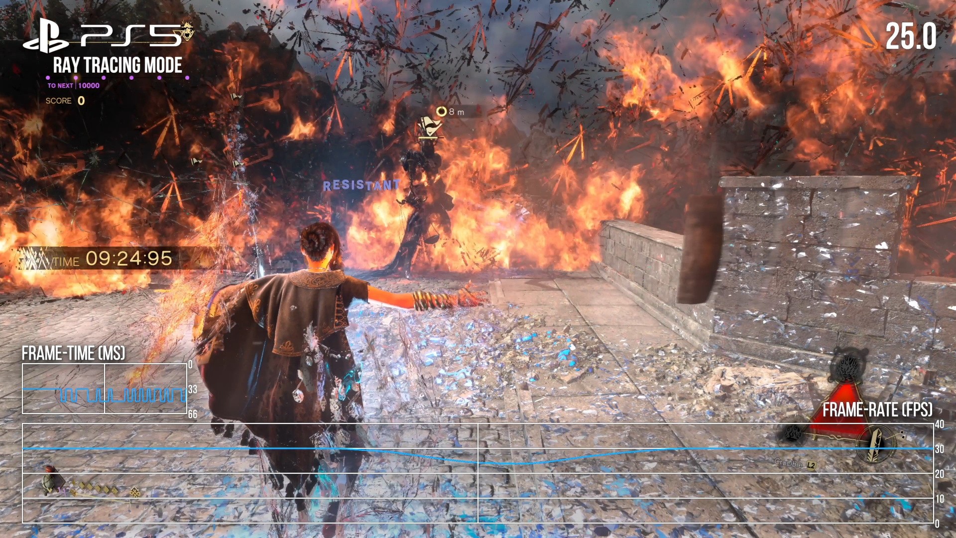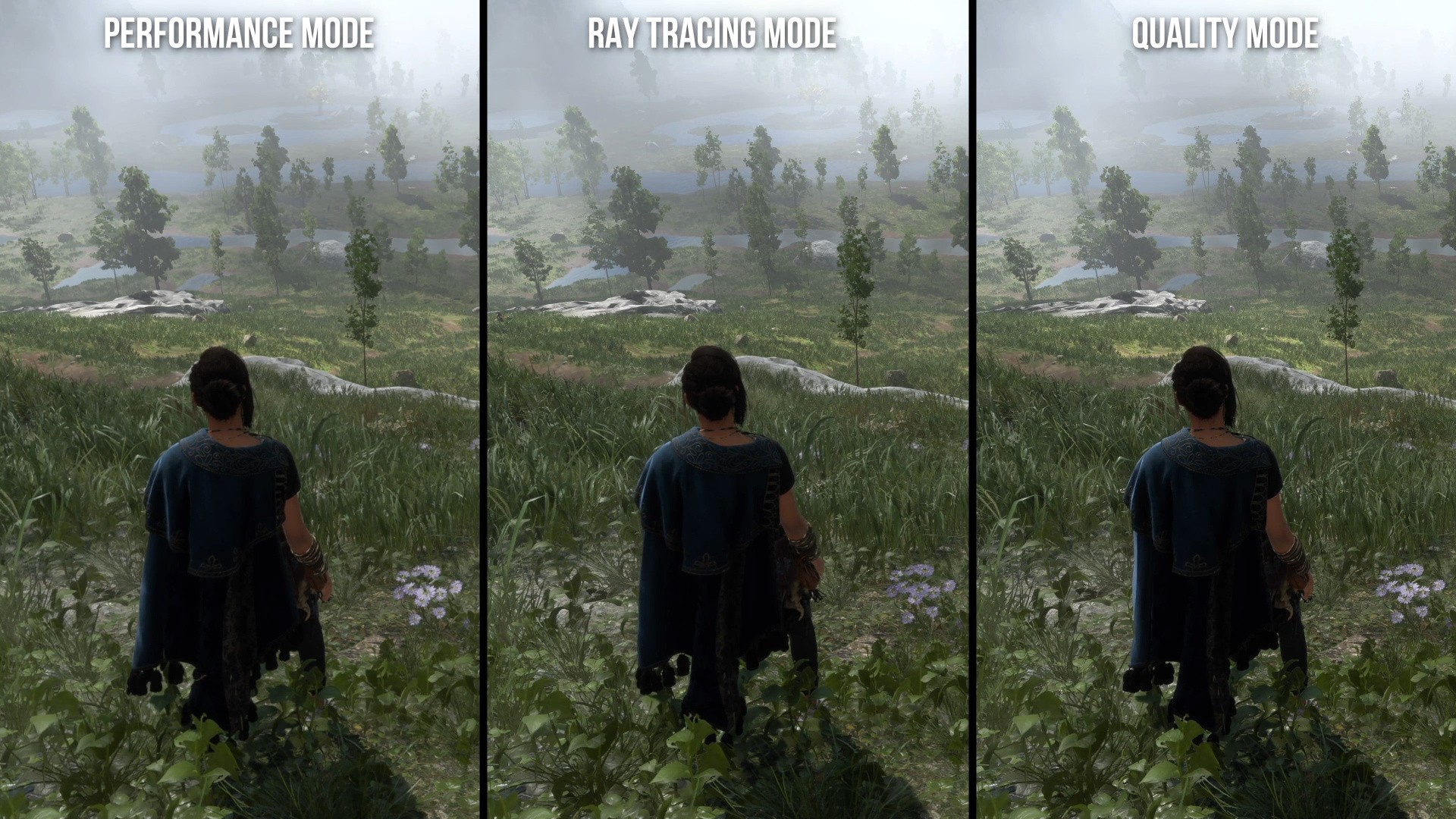 The modes available at 120Hz output are a bit more interesting. The performance mode is pretty unassuming - the frame-rate target is still 60fps, with drops around 40fps at worst during battles. However, both the quality and ray tracing modes now target 40fps. They do drop in battle, though not quite as hard as at 60Hz, coming in around 30fps at worst. Traversal seems to be a locked 40fps, so in general the performance level is significantly higher than the 60Hz alternative. All of these modes appear to use similar visual settings to their 60Hz counterparts. It's possible that the internal resolution is cut back somewhat to achieve higher performance targets, though the actual final image across the 60Hz and 120Hz mode variations appears very similar.