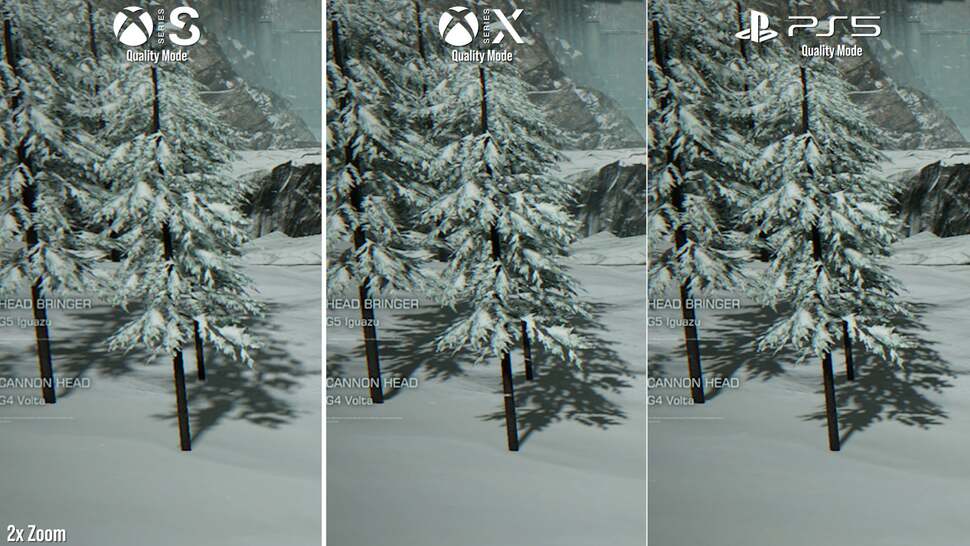 So is this truly the best way to play Armored Core 6, supposing you only have a PS5? Should you buy the PS4 version? Well, it's not a bad call if your absolute top priority is 60fps. Still, there are some negatives to point out before you jump in. Firstly, the settings are lowered, even below the Series S setup. Switching between PS4 and PS5 versions, texture quality is reduced across the ground, along with texture filtering, resulting in blurrier surfaces. There are also reductions in quality to tree shading quality and reduced geometry draw distances - again, similar to what we saw with Elden Ring running on PS5 using with PS4 Pro code. Pair that with the 1800p checkerboarding, and the image lacks the definition of the genuine PS5 version in quality mode. But in action, I'd say it still holds up. In fact, surprisingly the shadow quality on the floor is a match for the PS5 settings in its frame-rate mode, and even screen-space reflections are retained in puddles for this version.