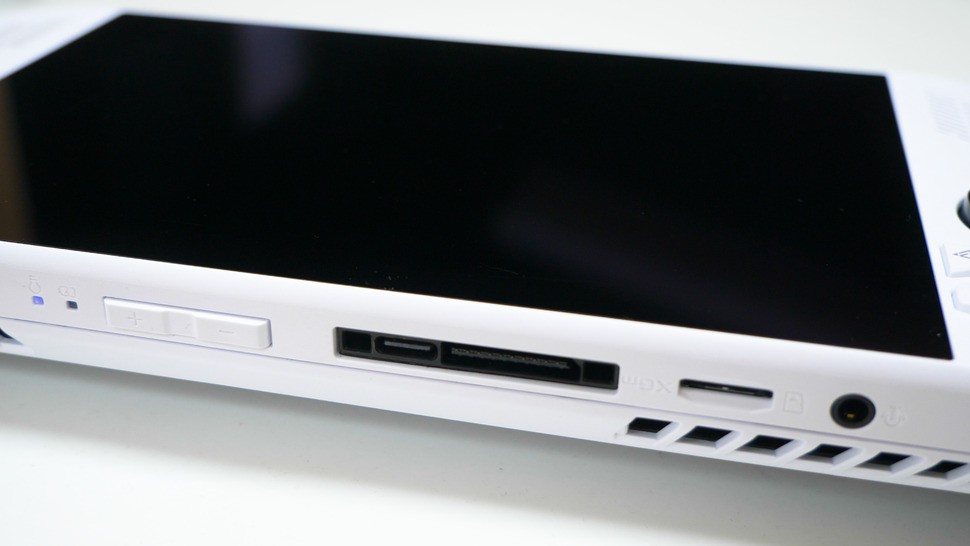 IO consists of power and volume buttons, a single USB-C, micro-SD slot and 3.5mm stereo jack for headsets. There's also a PCIe interface for connecting Asus's line of mobile GPUs up to the RTX 4090, at which point the Ally's iGPU is switched out in favour of the external processor. This frees up the CPU to make full use of memory bandwidth and power budget, no longer needing to compete with resources to the onboard Radeon 780M. The IO does the job, but I would have welcomed an extra USB-C or two (the AyaNeo 2 has three!).