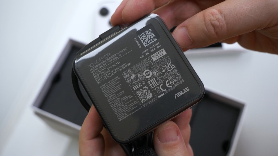 Opening up the box, there's not much to the Ally's packaging. The handheld itself is immediately below the lid with no protection (which is a touch worrying) while directly under that sits paperwork, a 65W power supply and a power cable. Asus also supplied a separate charger that also acts as a USB hub and features an HDMI 2.0 output, but that'll be a separate purchase for users - it's a bit odd to have the video and USB outputs on a plug, but there it is. I'd recommend a more conventional USB-C hub instead.