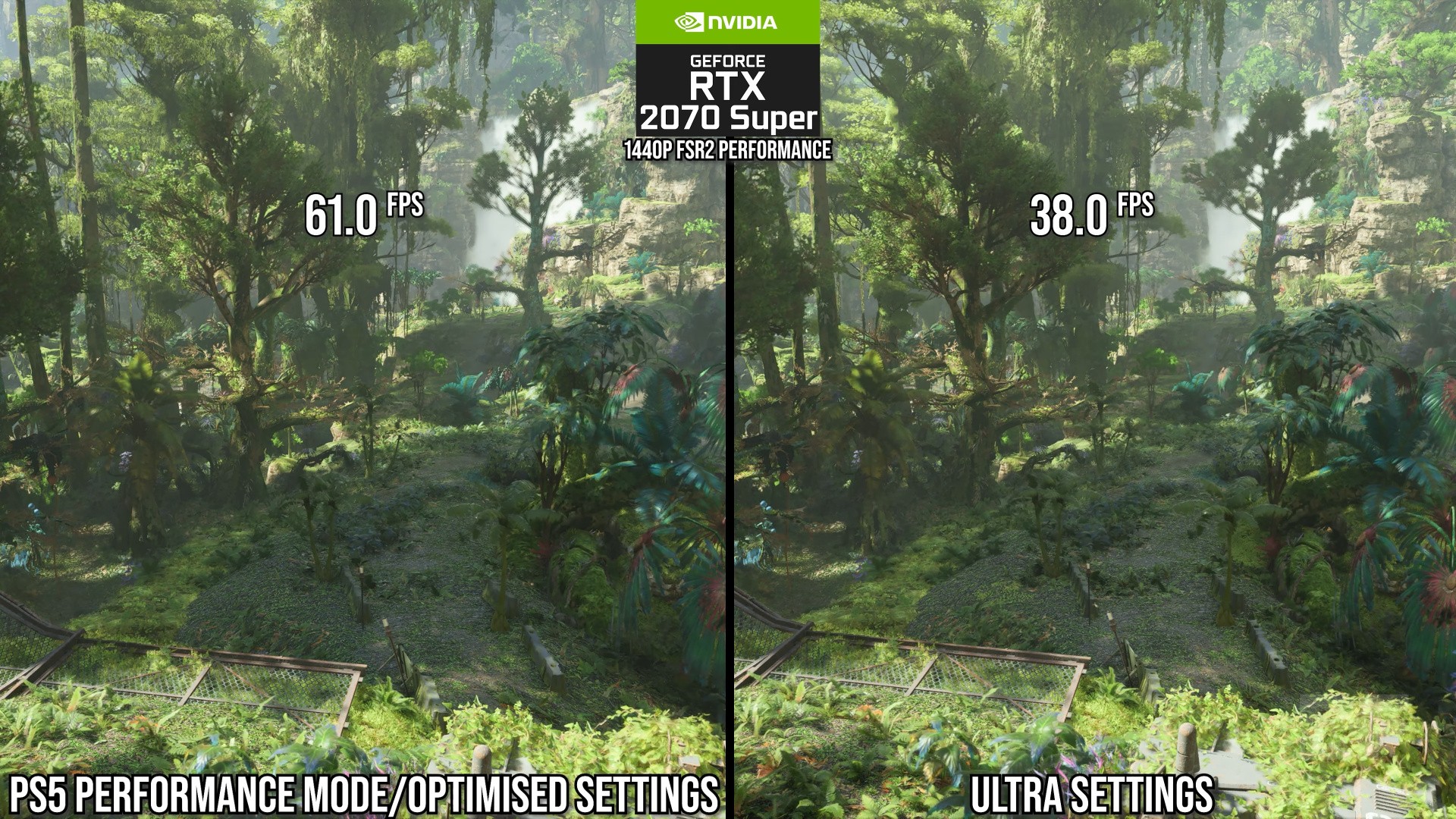 Versus ultra settings - not even the unobtanium preset - our optimised settings on the RTX 2070 Super at 1440p with FSR 2 performance mode increase performance by an incredible 61 percent. There is admittedly less precise RT and long-range distance detail, but the game is still handsome.