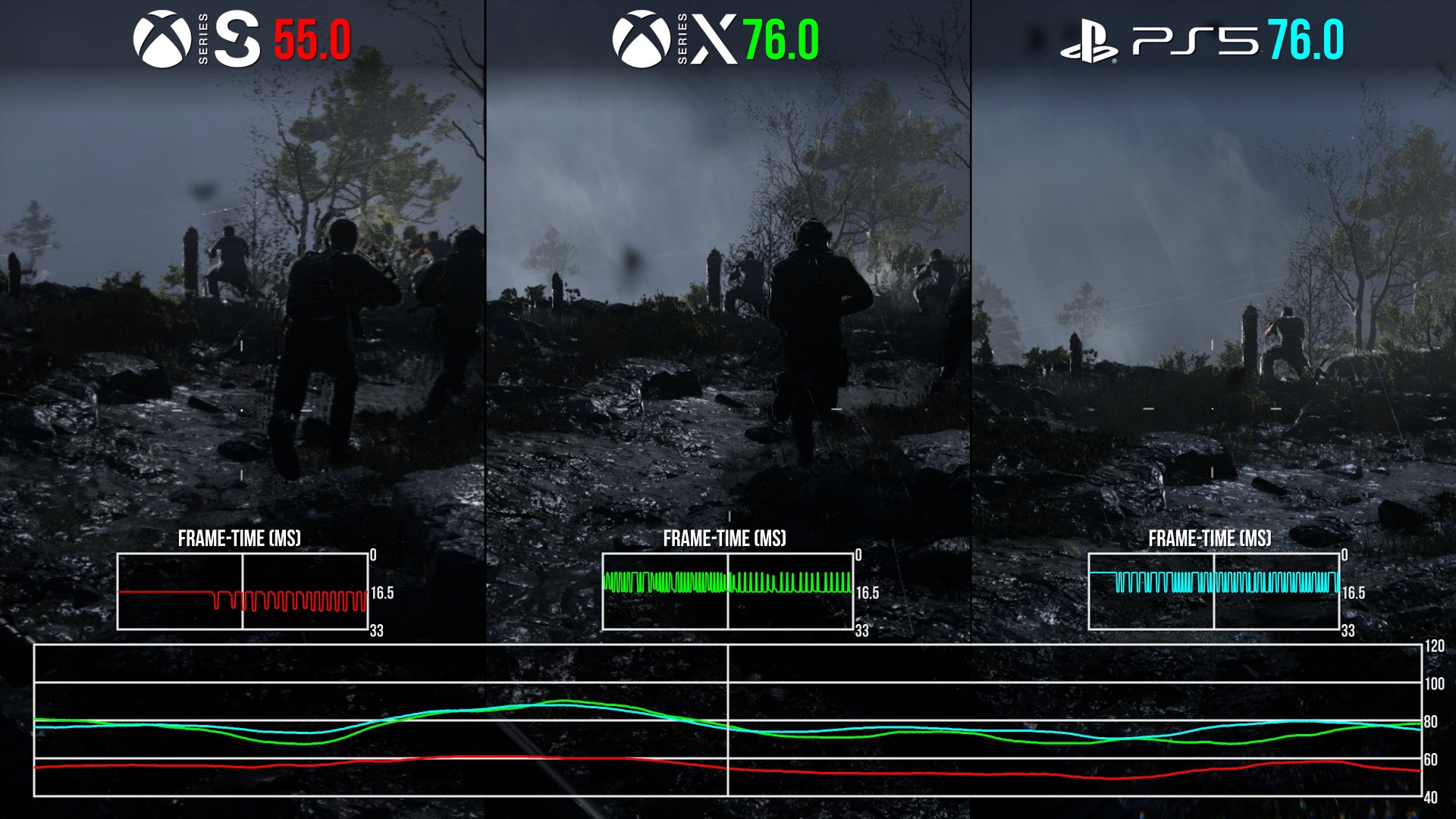 Pure performance is what separates Series X and PS5 from Microsoft's junior Xbox, especially in 120Hz gameplay. Starting at 60Hz to begin with though, the good news is PS5 and Series X are typically rock solid in their delivery of each mission. There are exceptions as always and certain points in the level do drop into the high 50s, if briefly, while Series X also stutters during autosave checkpointing, which PS5 does not. Overall, PS5 is a touch more consistent than its Xbox counterpart, but not to any kind of game-changing degree.