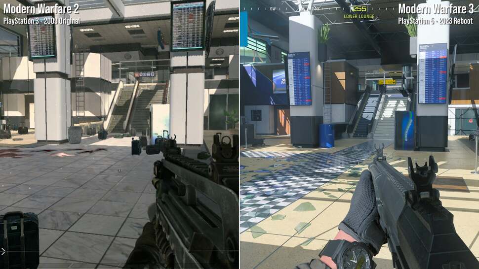 On top of that, there's the online multiplayer, with 16 team deathmatch maps at launch. It's not a bad number, except all of them are remakes from the 2009 Modern Warfare 2. There are no original maps for 6v6 games, in other words, though new maps are reportedly due post-launch. In fairness, tapping into the nostalgia for a 14 year old game pays off well at first. It's a crowd-pleasing move, and each presents as a 1:1 scale match for each original map: Terminal, Highrise - they're all here, with visuals updated on the latest IW engine. But again, the impression is there wasn't time to make new 6v6 maps for launch.