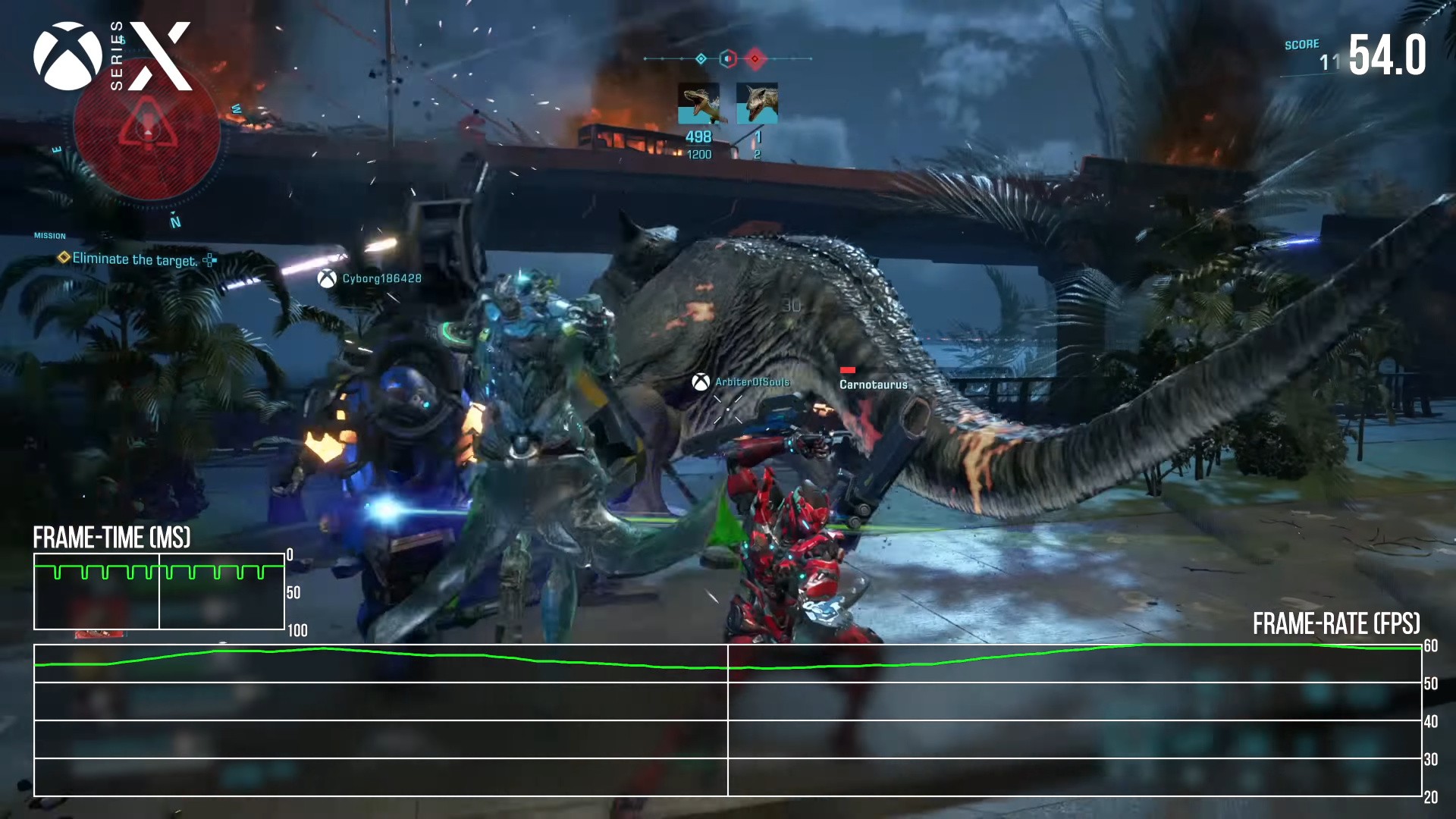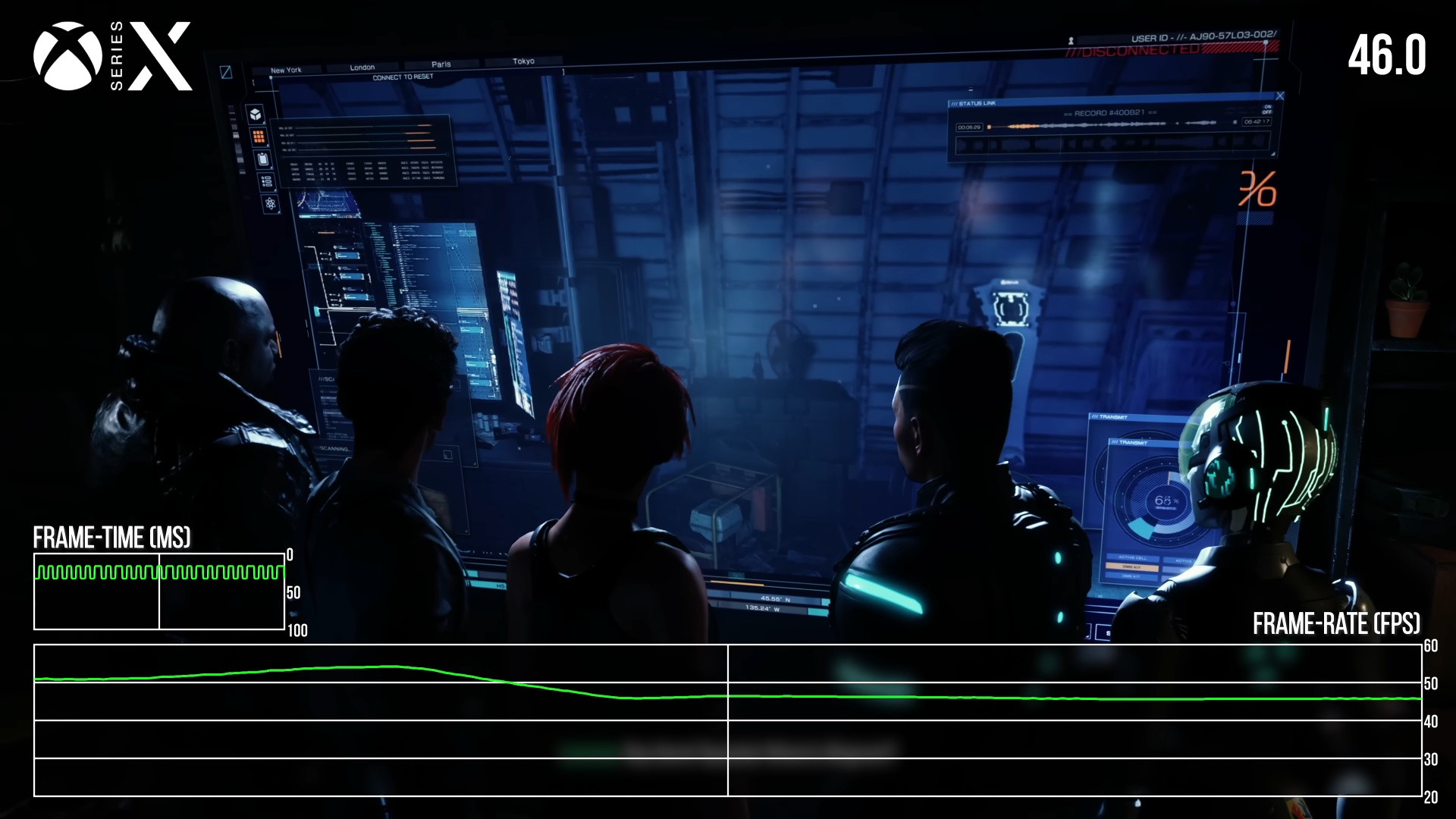 Series S faces more significant performance challenges, with more regular and substantial frame drops. Expect a readout in the 40s and 50s during gameplay, with plenty of judder too if you're not using a VRR display. Cutscenes also run in less-than-ideal shape, dropping to the 30s at worst with highly inconsistent frame-times. VRR-capable displays do solve the majority of these issues, even on PS5 with its 48Hz-60Hz VRR window. On a non-VRR display though, the experience does leave something to be desired, particularly on Series S. Consistency is key for multiplayer shooters, and Exoprimal isn't delivering here as it probably should be.
