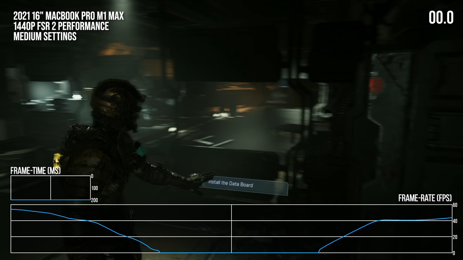 In-game performance isn't quite so positive, with the M1 Max in a 2021 MacBook Pro delivering 30-60fps even with conservative settings - not ideal for graphics hardware that's theoretically more in line with an RTX 3060. It's definitely playable, but far from ideal - especially with frame-time spikes that can last a few hundred milliseconds or so up to a second and a half. These are likely a mix of the game's traversal stutter alongside shader compilation stutter, just blown out to ridiculous degree at times. Some of the stutters don't recur on a second playthrough, so it does at least seem that the shader cache is working as it would on Windows. It is possible to get to a stable 60fps - 1080p with FSR2 ultra performance and medium settings - which makes for a reasonable experience after the stutter-heavy opening areas. That's not bad for a one-click port enabled by the Game Porting Toolkit.