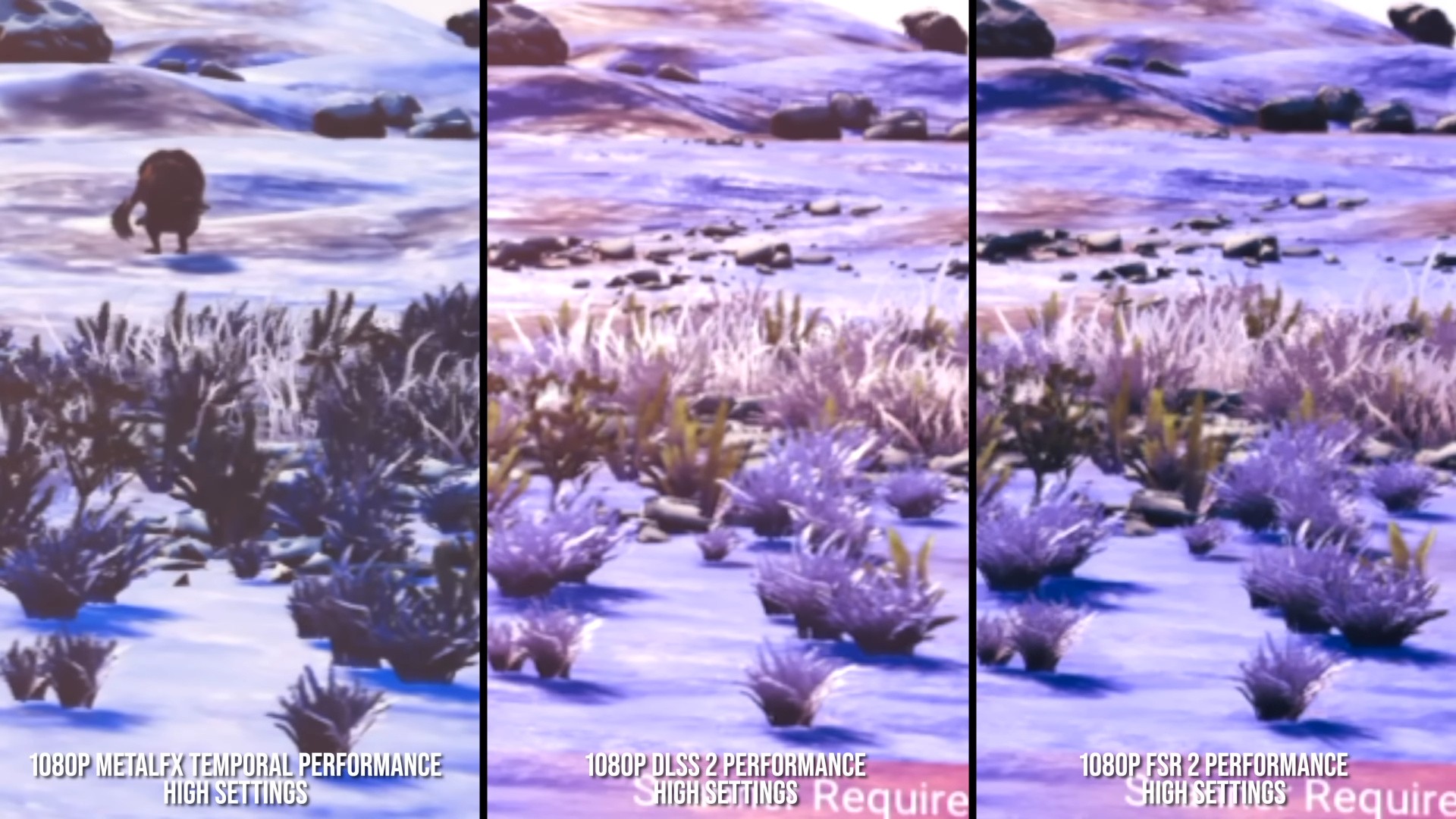 I wanted to close things off by taking a quick look at the new Mac port of No Man's Sky. The port itself isn't particularly special - the game runs well enough but suffers from periodic frame-rate drops that make it pretty unsatisfying in my opinion, even on lower graphical settings. However, it comes with Apple's impressive MetalFX upscaling tech, giving us a chance to compare it to popular PC upsampling solutions.