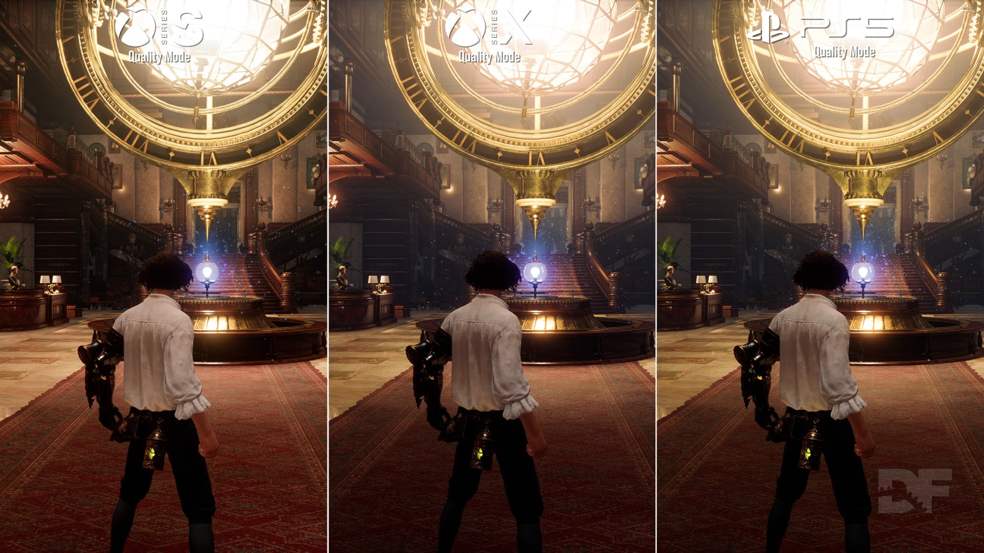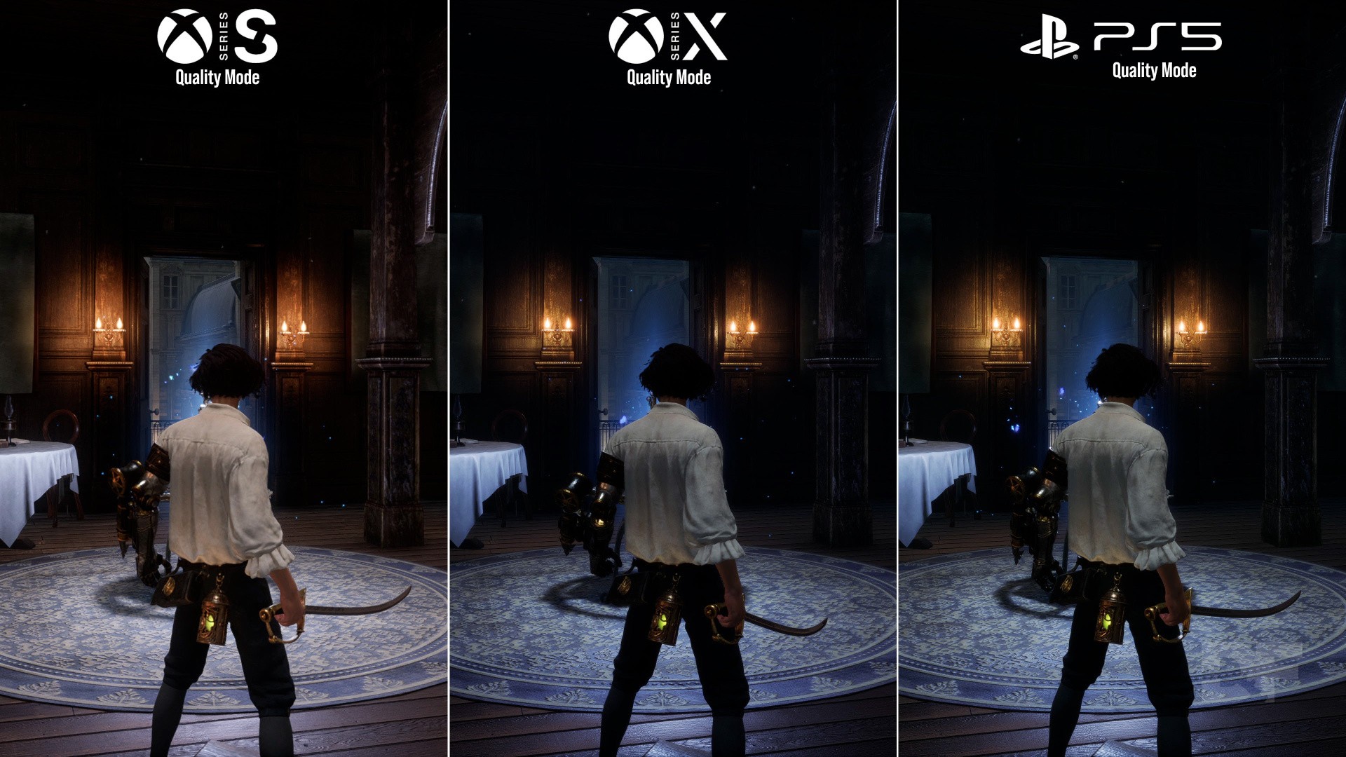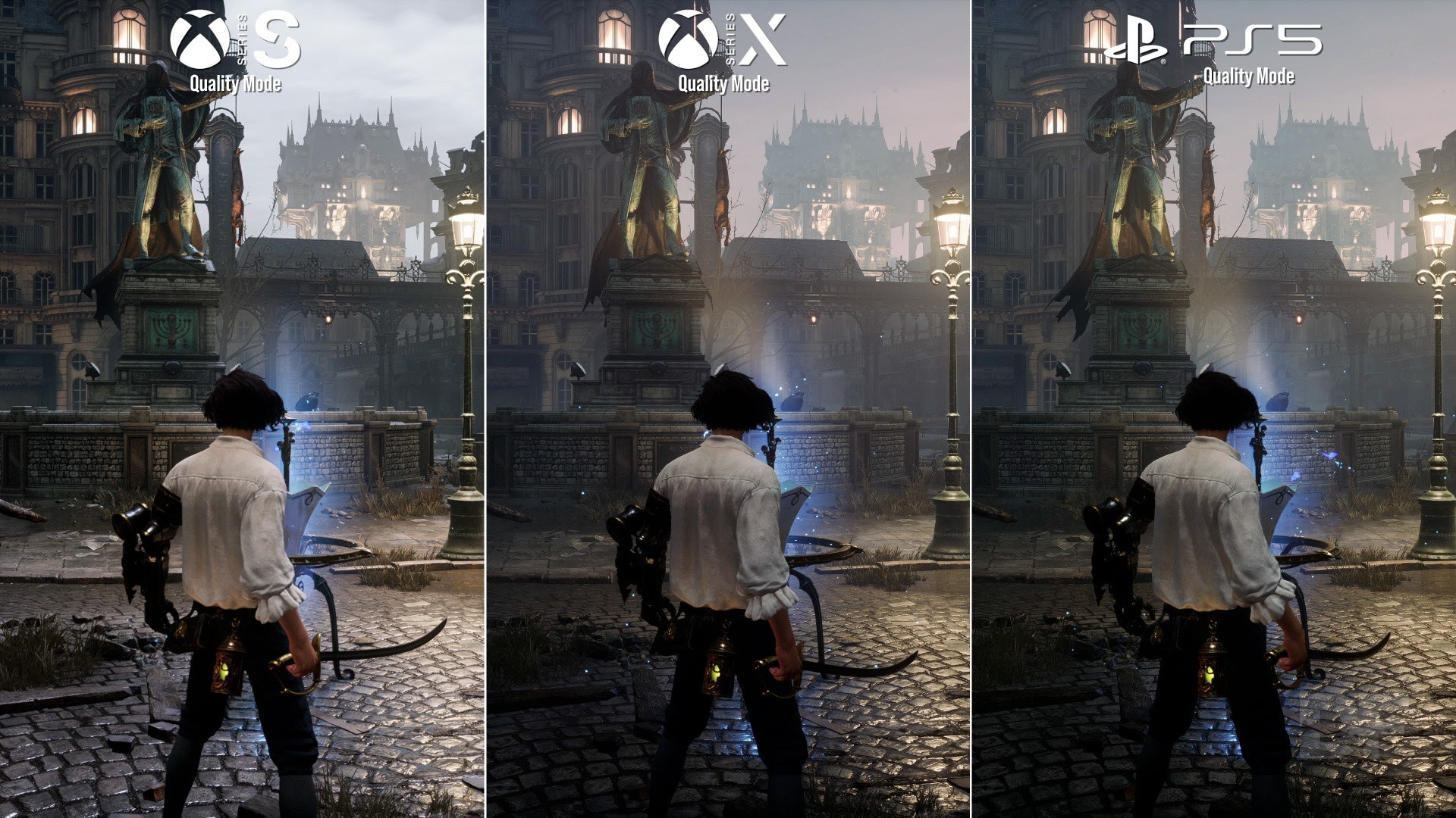 Series S stacks up well by comparison too, with a native 1440p image that gets temporal anti-aliasing to clear up any noise in its upscale to 4K. The image quality on Series S is superb, despite the 4TF profile of the machine itself. Moreover, the three consoles are a match in core visual settings, with the same texture quality and geometric detail across Lies of P's cobble-stoned streets.