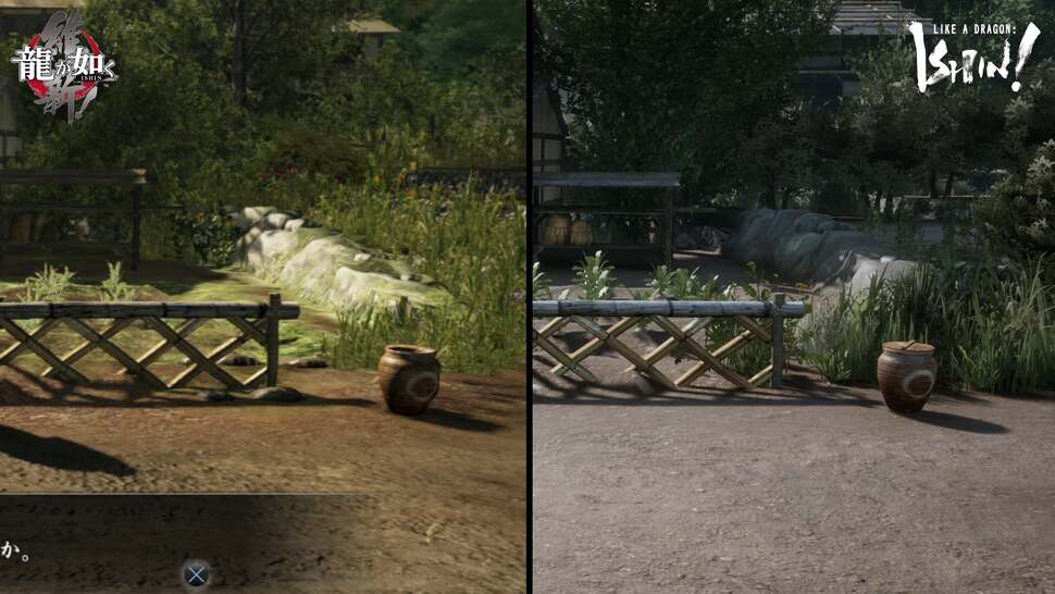 With that said it is important to keep expectations in check with this game, because there are a lot of visual holdovers from the original release, and they can be distracting. The most substantial fault comes down to environmental asset quality. Most of the game's environmental geometry and base textures are essentially unchanged. Expect to see the same angular geometry across the gameworld, and the same basic 2D art plastered across most surfaces, sometimes at a higher resolution but otherwise identical to the original work. At a distance, it doesn't stand out very much but at close range you don't get the complex, geometry-rich modelling we're used to seeing in modern games. Ishin often has the sort of stark, boxy look that older games often exhibit when rendered at high resolutions.