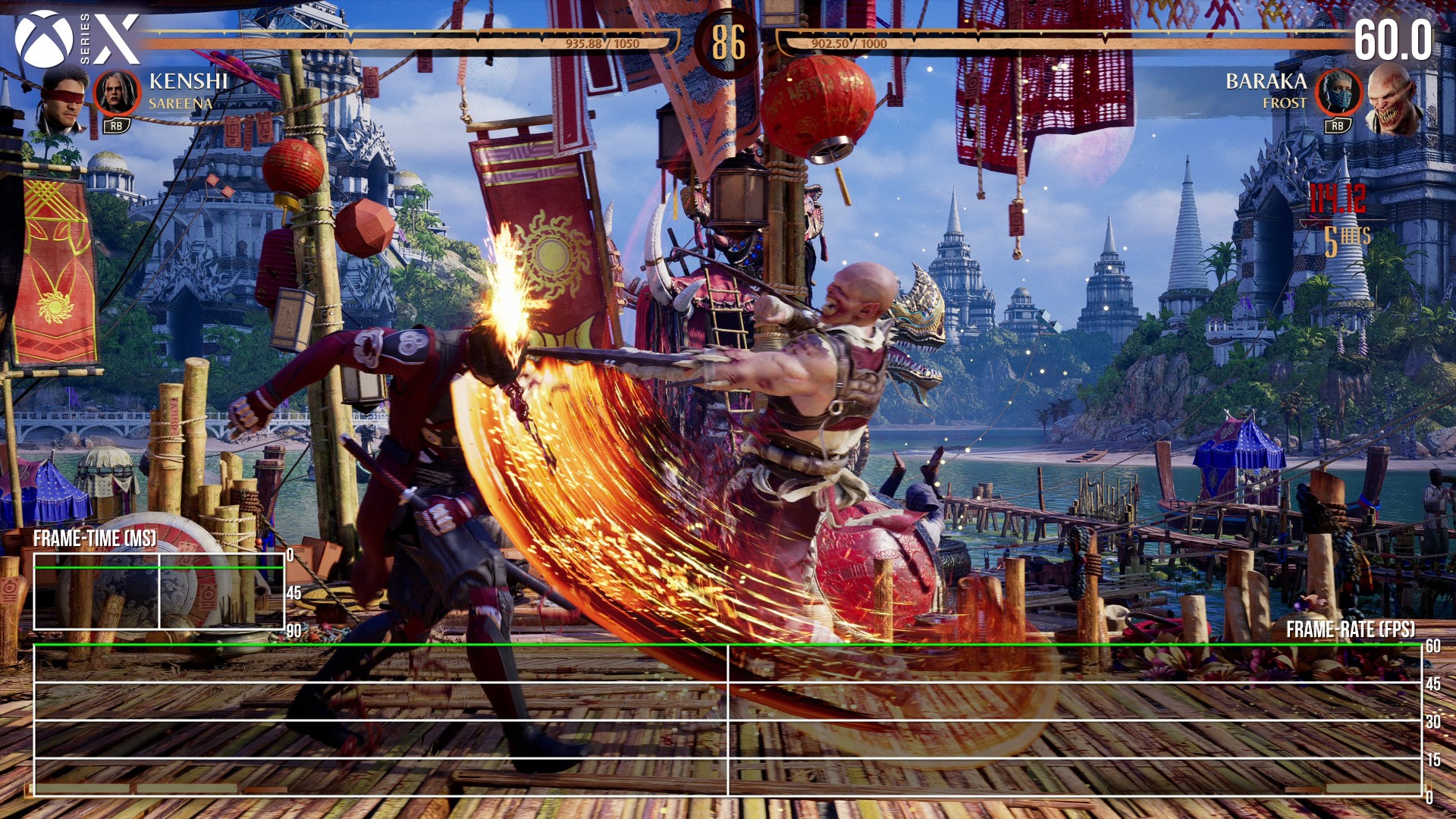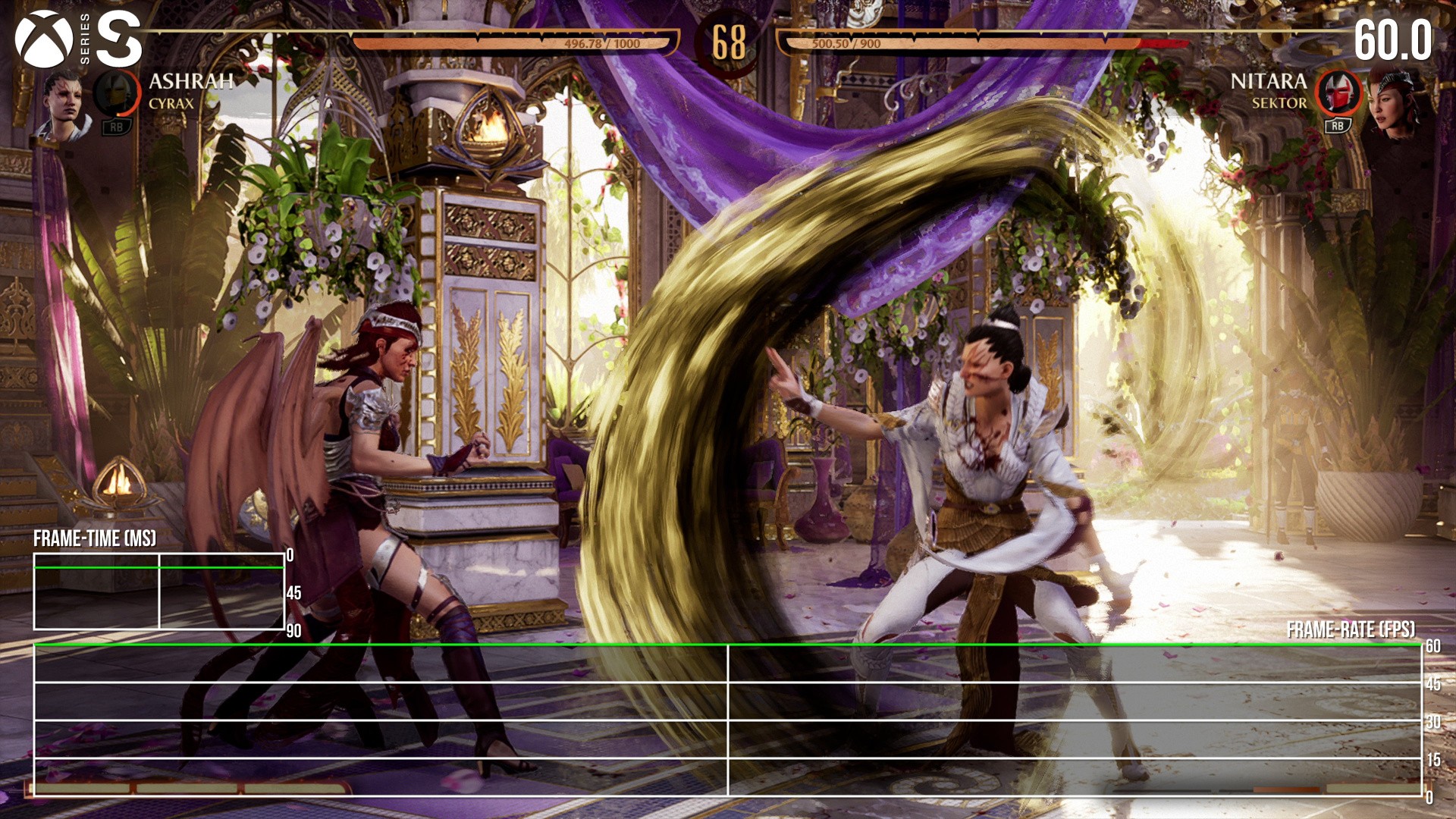 Moving on to performance, the state of PS5, Series X and S is best summarised as a solid 60fps in gameplay. Even with four characters on-screen - two combatants, and two Kameo fighters - it barely drops a frame from 60fps on any machine. Great news then, and the fact is even Series S' cut to 1440p, with a drop in select visual settings, gives us a watertight 60fps too. It's exactly what we'd expect. The only downside, as is the trend with 3D Mortal Kombat games, is each console caps to 30fps during intros, fatalities and outros. This transition from 60fps gameplay to 30fps scripted moments is still jarring to see.