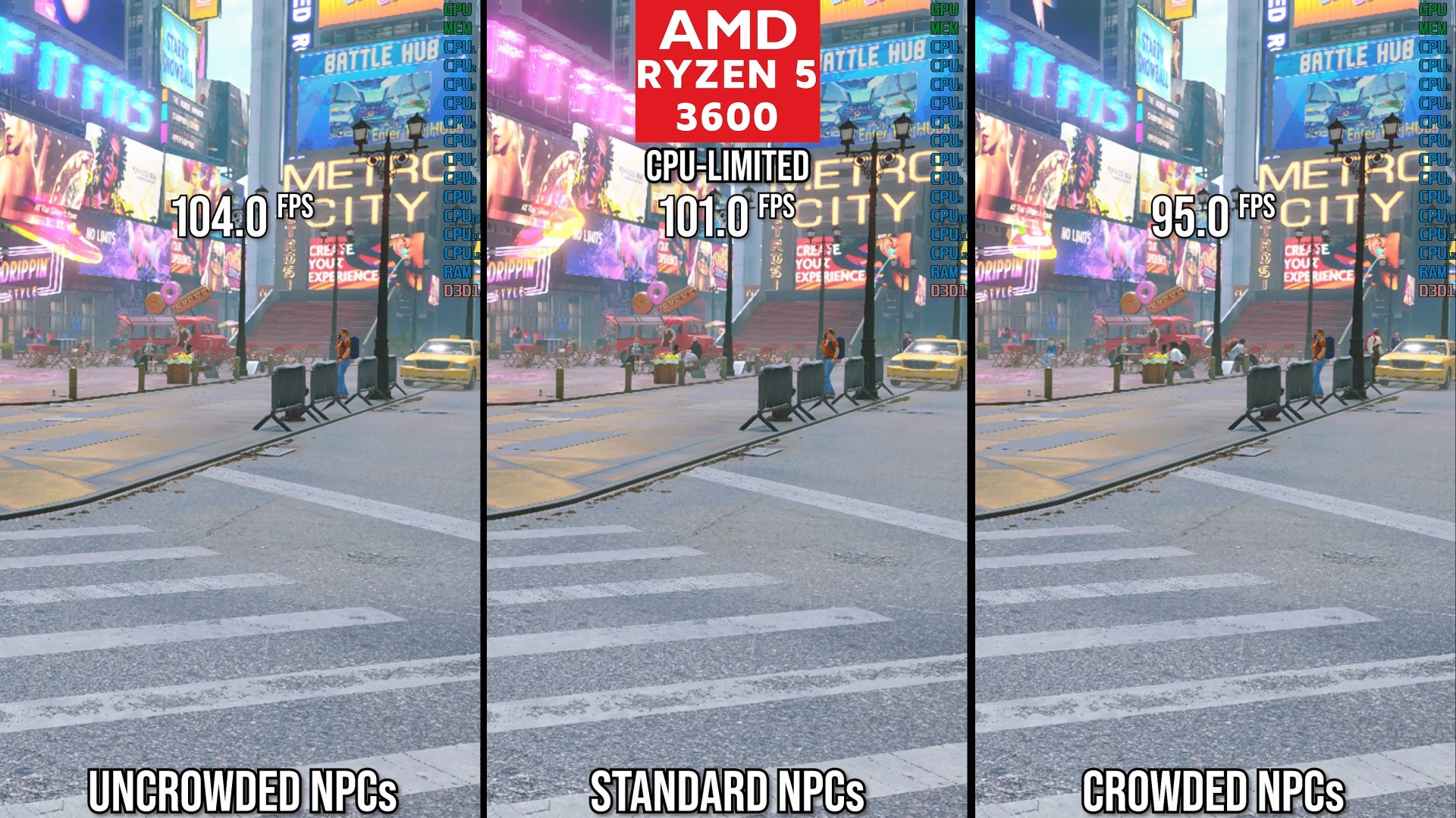 Dropping this maximum player setting down to 40 players is the sweet spot, as there's a 40 percent performance gain in doing so. I'd also recommend the standard NPC setting, as the higher presets there can also cause issues to older, less capable CPUs like my Ryzen 5 3600.; In the one-on-one fights, there are no CPU issues at all that I can see, meaning that there's no reason to tweak the fight ground background object density slider.
