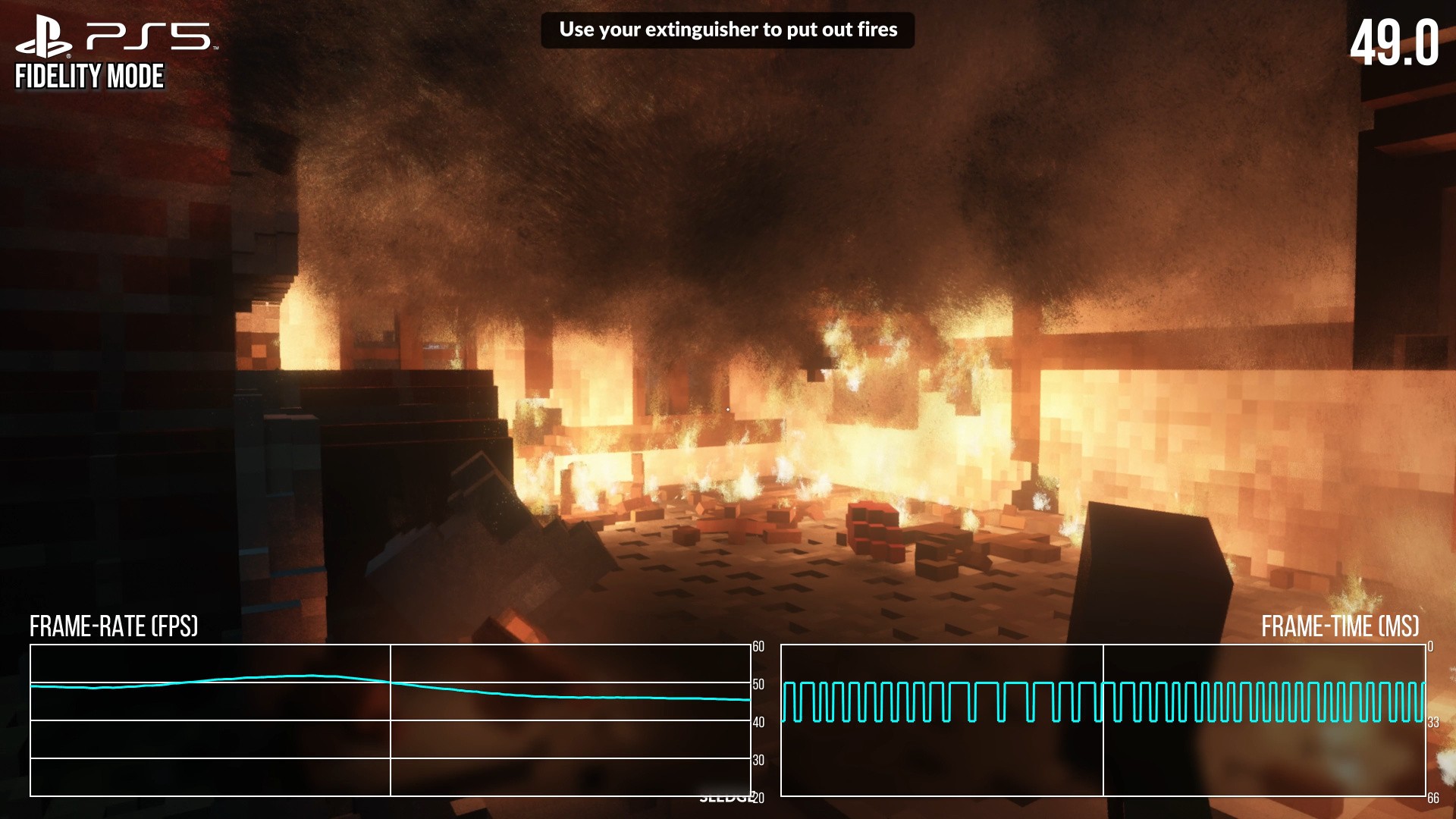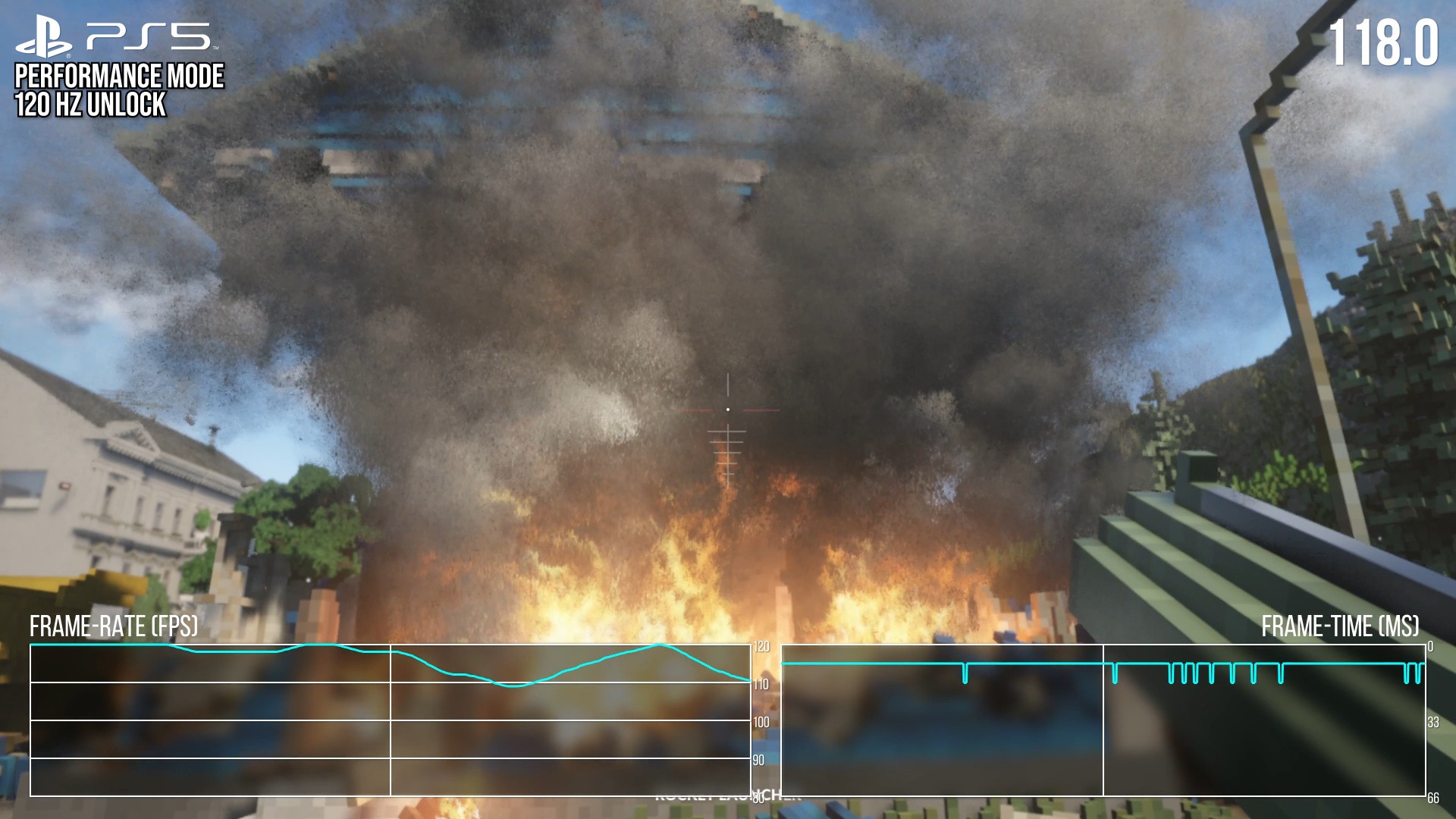 PlayStation 5's fidelity mode is interesting as it's quite performant for a game doing so much tracing, mostly sticking to 60 frames per second. However, frame-rate can buckle when you start getting into more intense destruction or where there's a lot of smoke and fire on-screen, sometimes into the 40s. This can drop still further when using the game's sandbox modes or other gameplay types where you have more extensive access to destructive tools. The 1080p performance mode runs standard gameplay scenarios without issue, which makes sense as the game is cutting the total resolution in half - and that aids performance a lot. However, I find performance mode most interesting in its 120fps configuration, where simpler gameplay delivers full frame-rates, with only greater destruction causing dips beneath to the 90-100fps area. This is totally reasonable bearing in mind the load on the hardware.