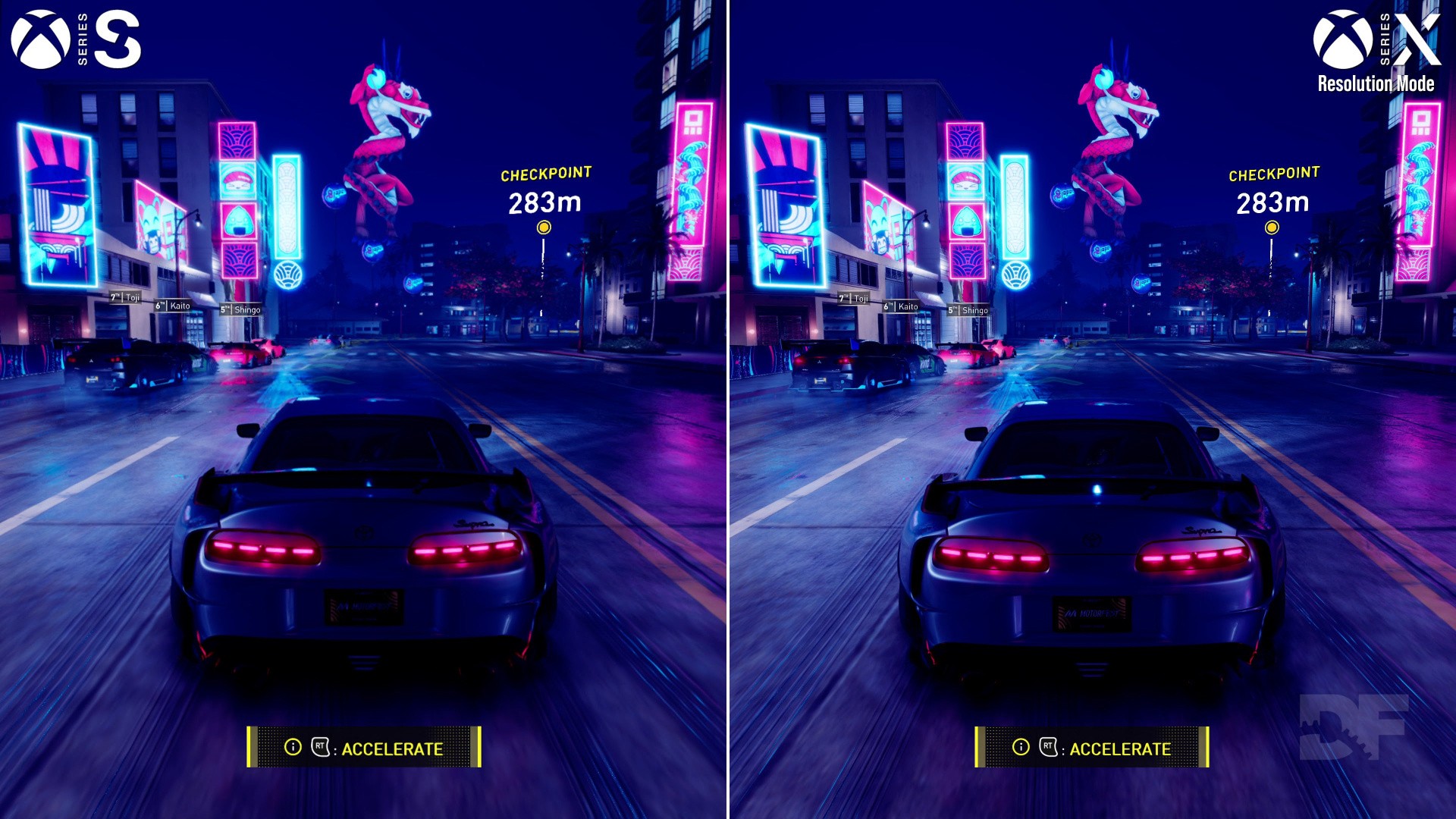 As for other visual downgrades, Series S uses similar settings to the 60fps performance mode on the premium machines. In other words, you get a similar drop in object draw distances, causing more pop-in on trees, and a more obvious shadow cascade ahead of the player. But on the whole, the visual setup on Series S isn't the issue - it's performance that poses the bigger problem.