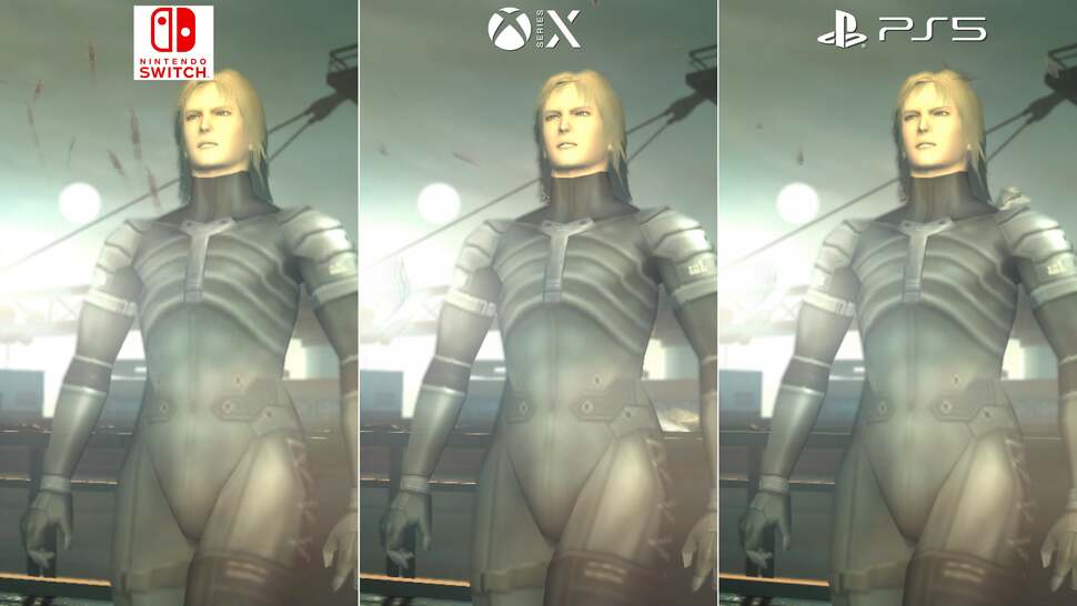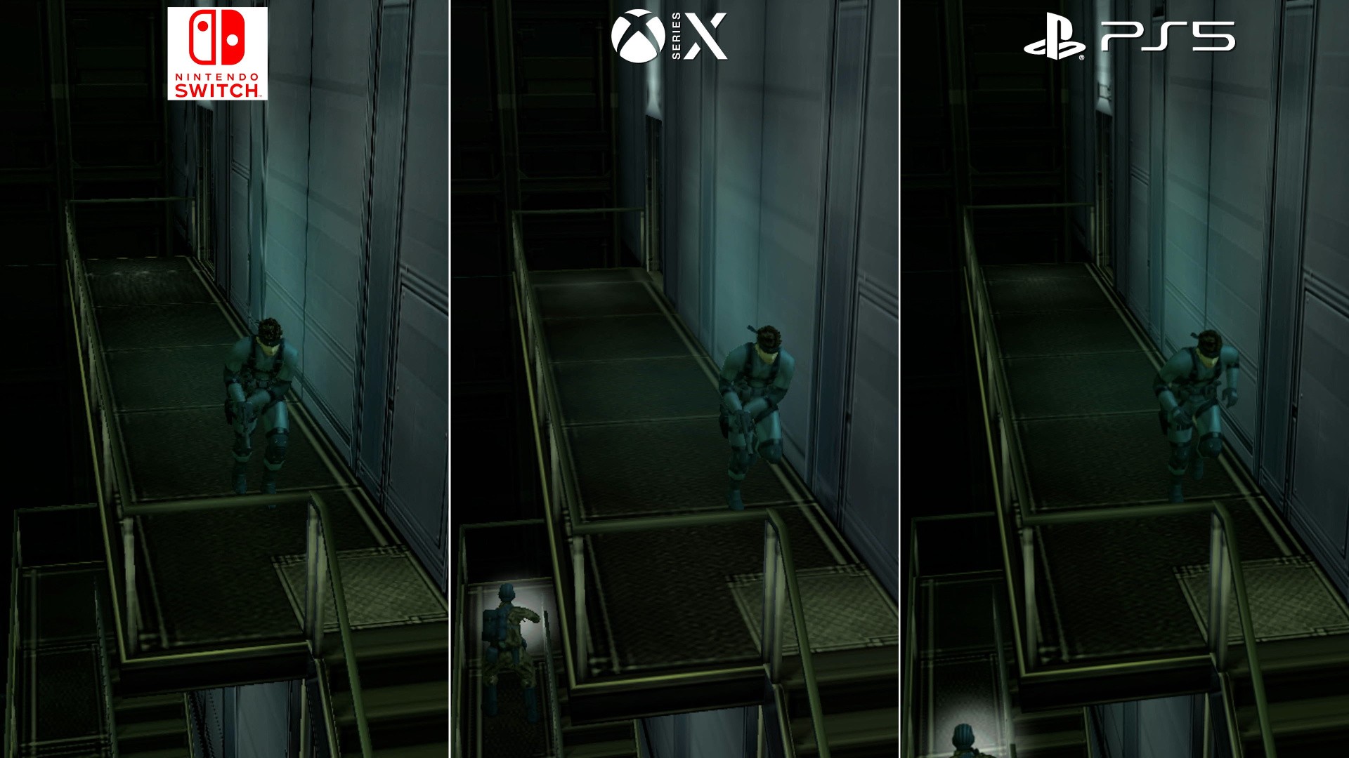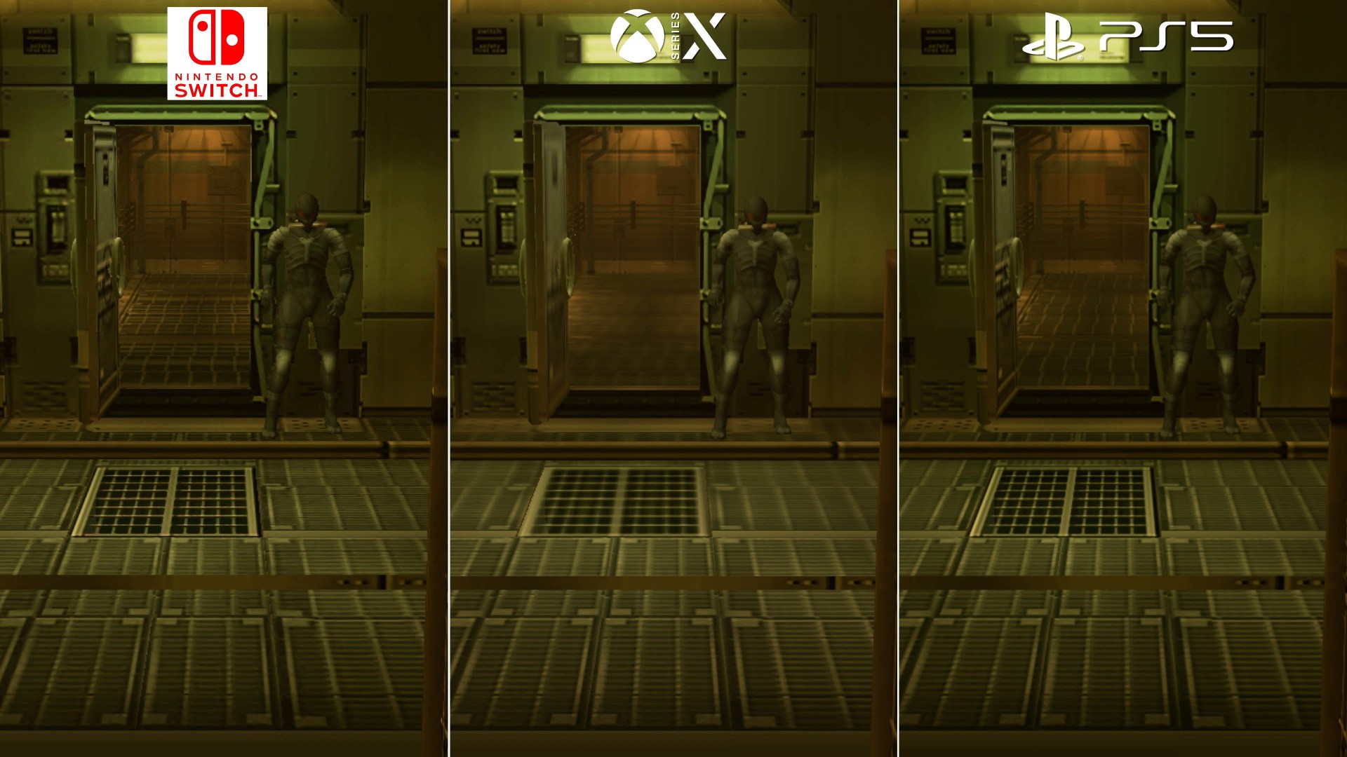 Jumping to the comparisons, this is where the problems show up. Switch, Xbox Series X and PS5 all sport a native 720p resolution, but anti-aliasing (AA) quality differs between all three consoles, notably in MGS2 where PS5 offers the most thorough treatment of rough edges. On the other hand, Nintendo Switch leaves all these edges entirely raw without any AA whatsoever, creating heavy visual noise and flickering, especially in motion. There's something off with Series X too. This features a form of anti-aliasing in parts to reduce moire patterns, yet elements of the image are left untreated with a similar result to the AA-less Switch version. The upside is that Metal Gear Solid 3 at least gets AA across the board, on all three consoles.