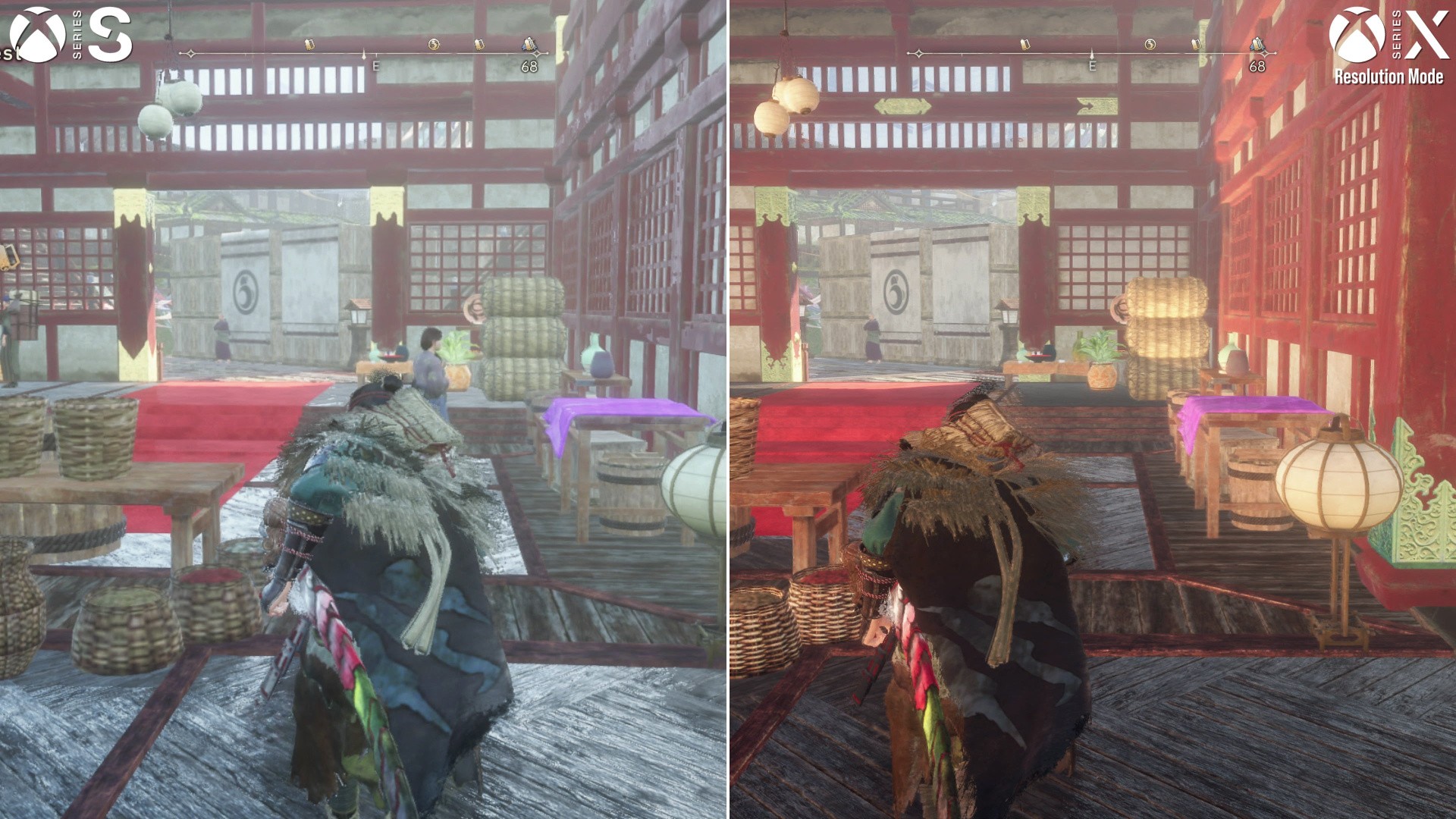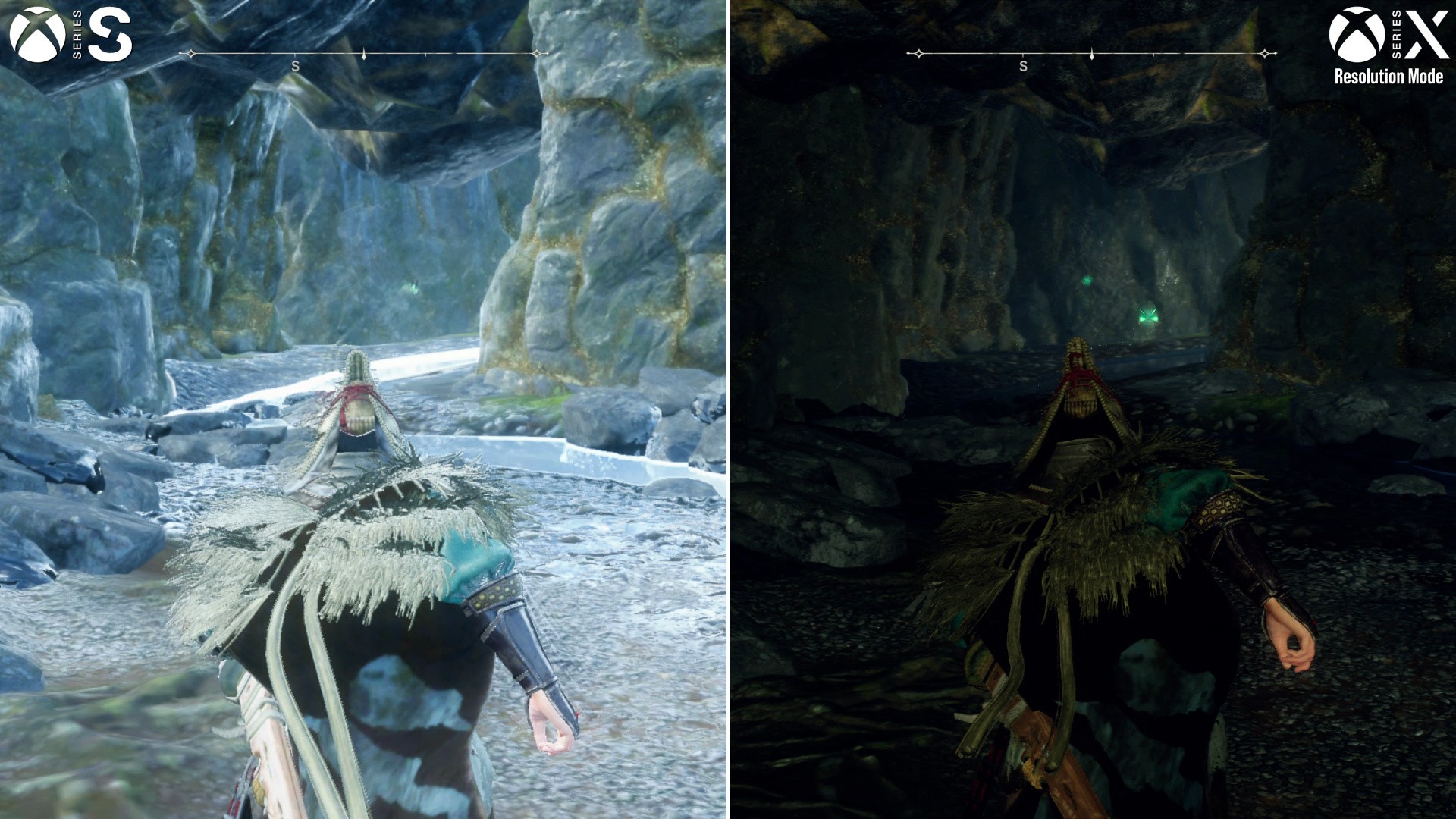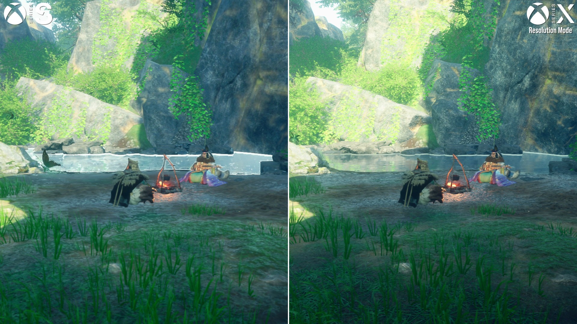 The second stark drawback to Series S is the absence of ambient occlusion. It's stripped back significantly further than Series X in select scenes, which in itself is already pared back next to PS5. So, for Series S, what this means is that entire environments are entirely unshaded - like caves, or building interiors - leaving a raw, bright, flat looking result. Added to that, there are further cutbacks on Series S, with pared back reflection quality and shadows. Wild Hearts' global illumination setting is also potentially affected on Series S here based on the above shots, creating a plainer, less vibrant result.