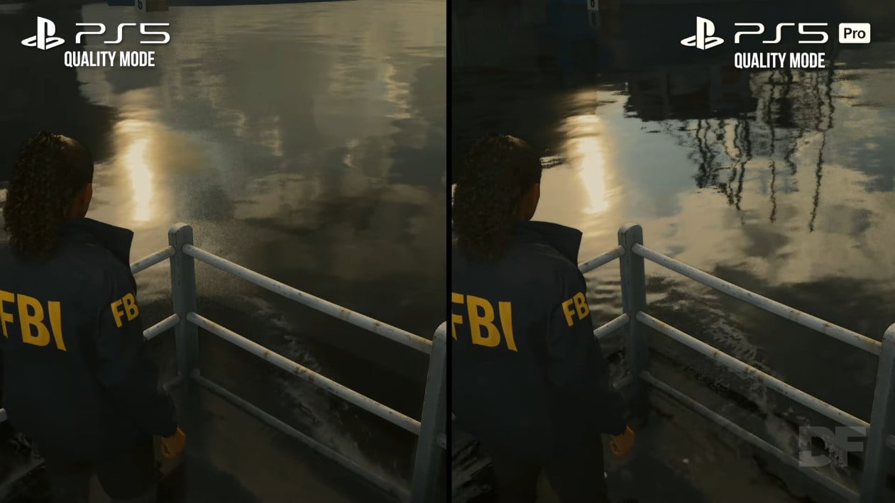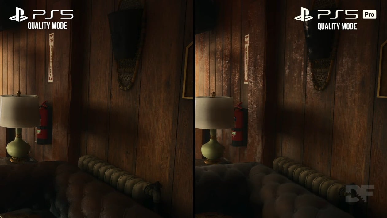Alan Wake 2 also uses the PSSR upscaler on PS5 Pro, which we'd expect to improve image quality. The original PS5 release uses FSR 2 with a base res of 1270p, while the PS5 Pro release is actually slightly lower at 1224p internally. We generally consider PSSR to be a better upscaler than FSR 2, but the result here is mixed at best. There's more image instability with PS5 Pro in still shots and it almost looks like a film grain is overlaying the image, though film grain and other post-processing effects were disabled in the menu before testing.